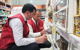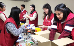위러브유 칠레 산티아고 회원들이 식료품을 하나하나 꼼꼼히 살핍니다.