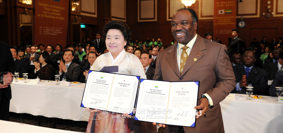 이어 위러브유 장길자 회장과 가봉 알리 봉고 대통령은 국제적인 환경문제 대응에 함께 손잡고 노력하자는 취지의 ‘기후변화 대응을 위한 공동 합의문’을 상호 교환했다. 위러브유 측은 가봉 대통령에게 감사패와 선물을, 가봉 대통령도 위러브유 장길자 회장에게 선물을 증정하며 상호 우의를 다졌다.