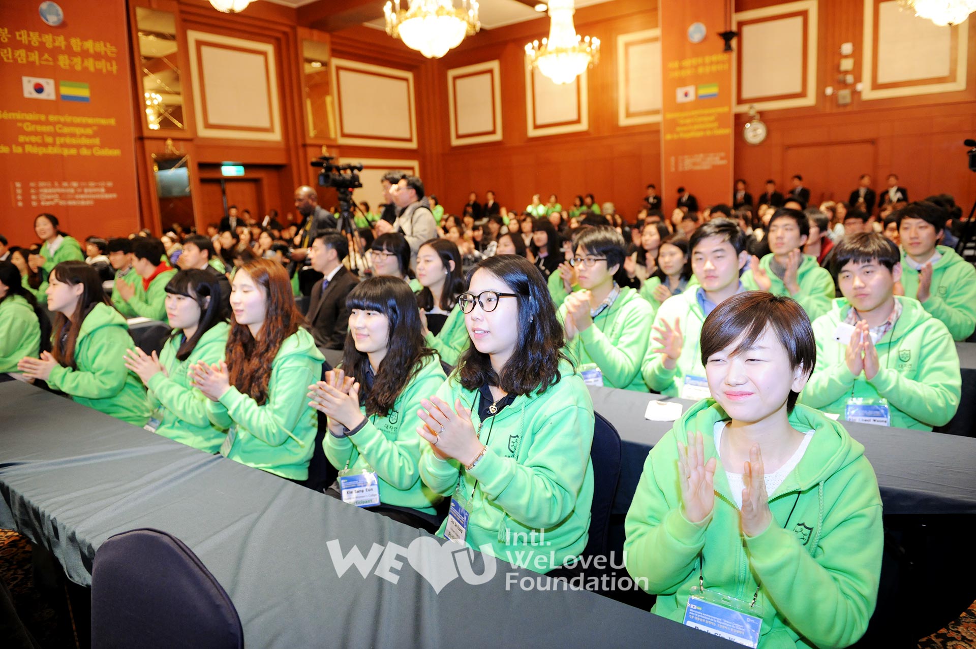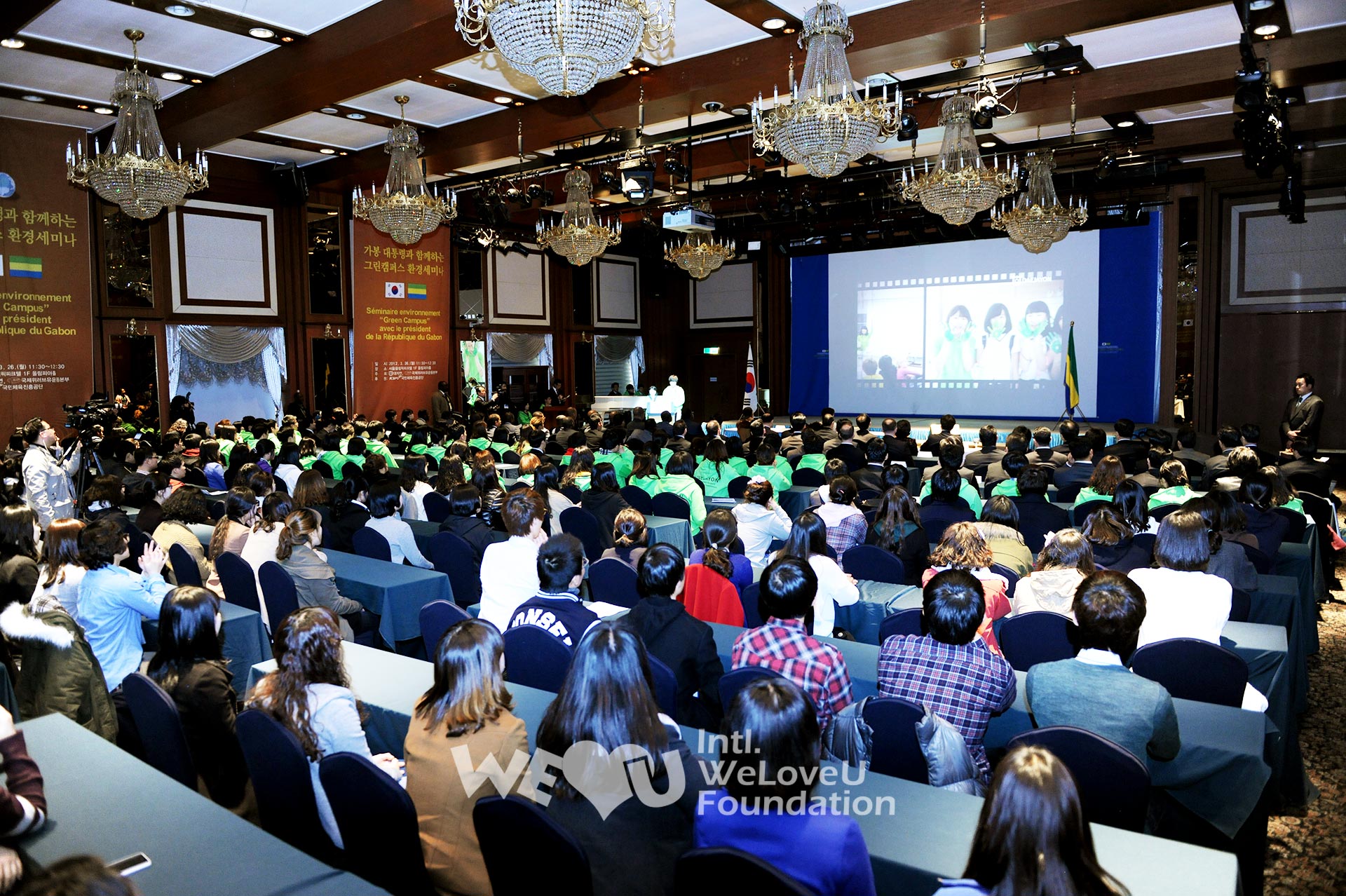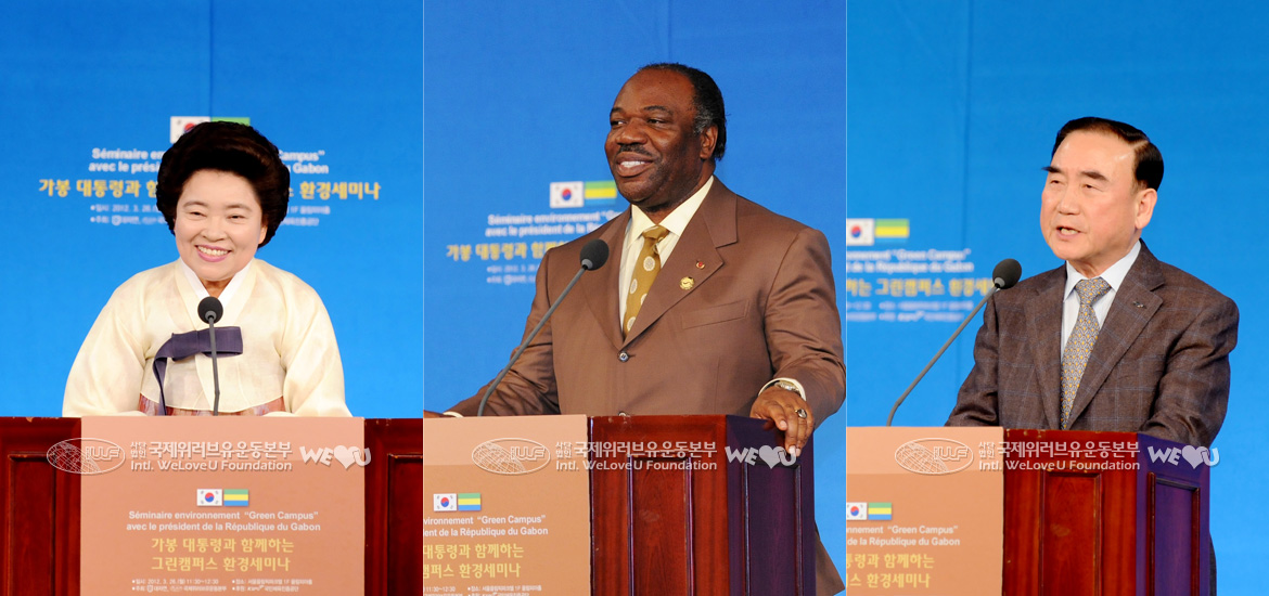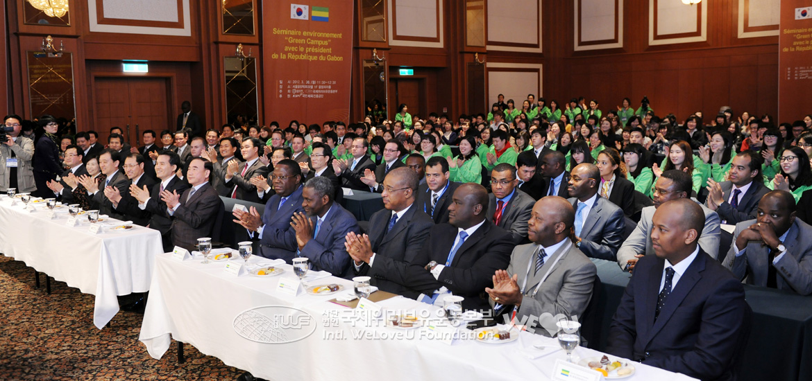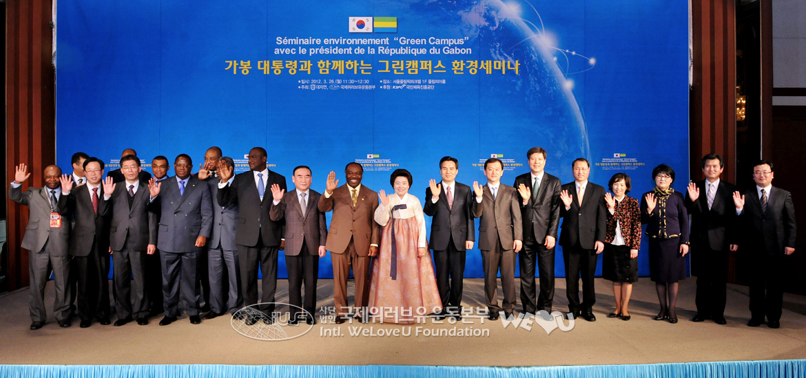 국제위러브유운동본부에서 주최한 ‘가봉 대통령과 함께하는 그린캠퍼스 환경세미나’가 3월 26일, 서울 올림픽파크텔 1층 올림피아홀에서 열렸다. 지구환경문제에 서로 인식을 공유하고 뜻을 함께하기 위해 마련된 이 자리에는 위러브유 장길자 회장과 이사진, 국내외 지부장 50여 명과 대학생 200여 명이 참석했다.