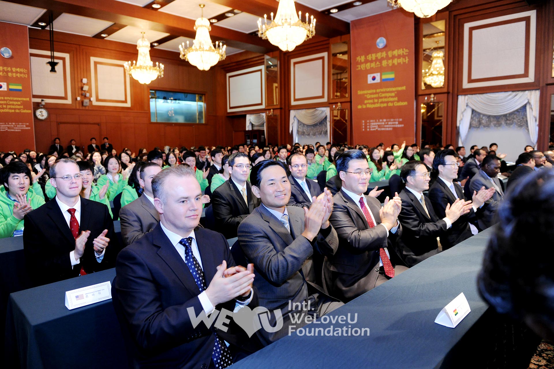 장길자 회장은 환영사에서 한국과 아프리카 최초 수교국인 가봉에 대한 한국인들의 각별한 우의를 강조하며, 함께한 내빈들과 대학생들에게 고견을 들을 수 있는 기회를 제공한 가봉 대통령에게 감사의 뜻을 표했다. 또한 환경문제에 많은 관심을 갖고 있는 가봉이 국제위러브유운동본부와 함께 지구환경문제 대응과 저탄소 녹색사회 구현에 뜻을 함께하기를 희망했다. 정정택 국민체육진흥공단 이사장도 환영의 뜻을 전하며 이날 행사가 그린캠퍼스 국제화의 획기적인 전기가 되기를 바랐다.