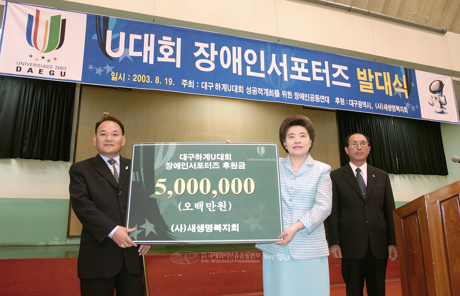 2003년 8월19일 대구장애인종합복지관 실내체육관에서 대구하계유니버시아드대회의 성공 개최를 위한 장애인 서포터즈가 발대식을 갖고 활동하게 되었습니다.