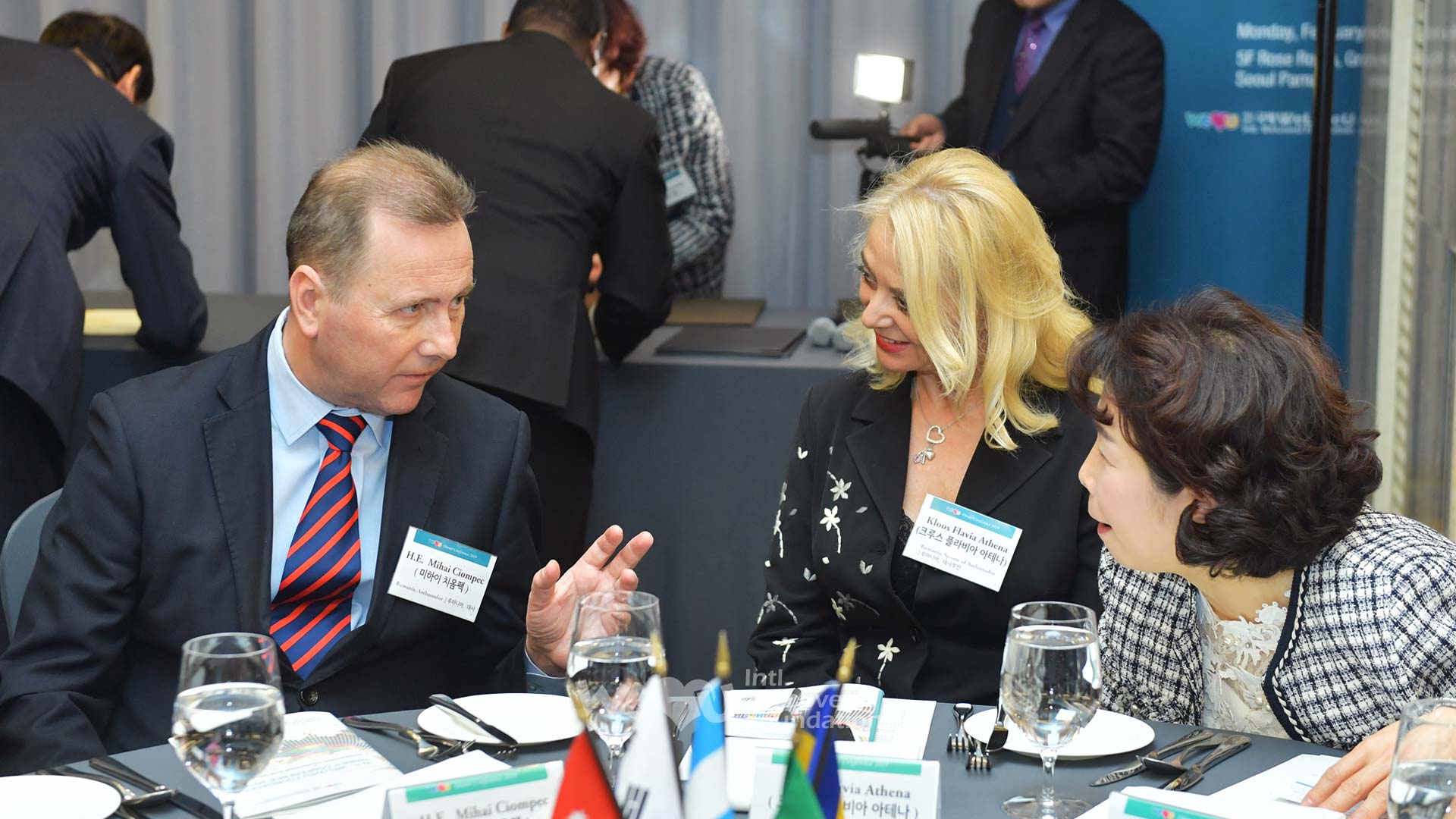 2월 18일 오후 5시, 서울 강남의 ‘그랜드 인터컨티넨탈 서울 파르나스’ 5층 행사장에서 개최한 ‘2019 국제위러브유 간담회’는 주한 외교관들이 참석하는 국제회의로, 작년과 재작년에 이어 3회째를 맞았다. 이날 행사에는 위러브유 장길자 회장 및 이사진과 주한 대사 등 16개국 외교사절이 자리를 함께했다.