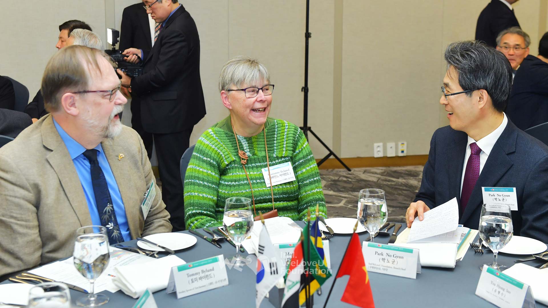 장길자 회장은 참석자들에게 감사를 표한 뒤 인류 복지를 위한 아낌없는 조언을 청했다. “이 자리를 통해, 어려움에 처해 있는 환경 난민, 전쟁 난민, 복지 난민 등 지구촌 이웃들에게 희망과 용기와 도움을 줄 수 있기를 바란다”는 장 회장의 말에 좌중은 큰 박수를 보냈다. 이어 장길자 회장은 어려움에 처한 이웃을 돕는 일에 그간 함께 힘써준 각국 대사에게 감사패를 증정했다.