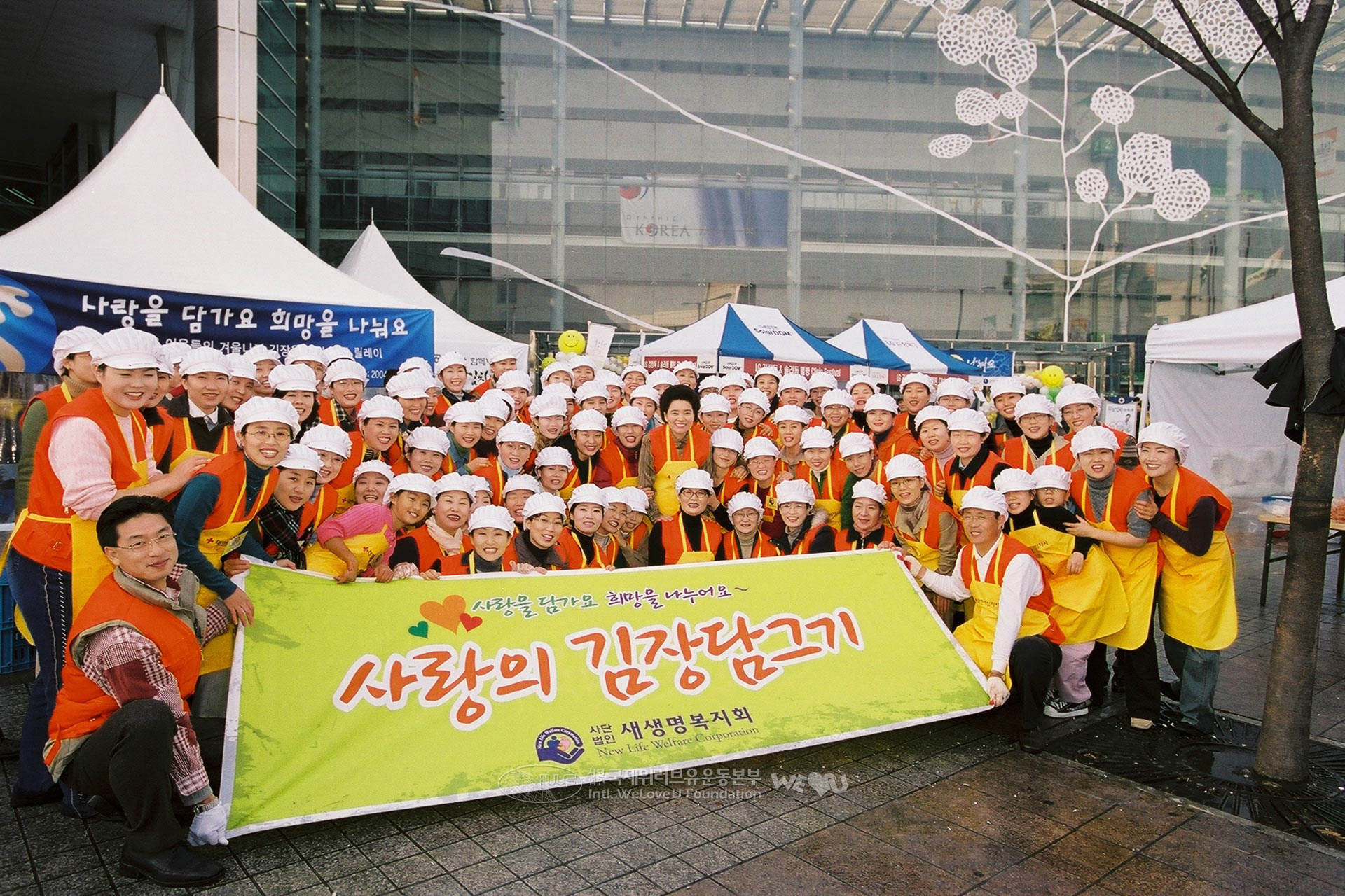오전 11시경 이곳에 주황색 조끼를 입고 노란 앞치마를 두른 인파가 모여들며 활기를 띠기 시작했습니다. 이들은 바로 대한적십자사(서울지사)와 서울특별시, 문화일보에서 공동 주최하는 ‘함께하는 김치 희망릴레이’ 행사에 초청받은 새생명복지회 회원들이었습니다. 김치를 담가 독거노인, 소년소녀가장, 장애인 등 빈곤·소외계층에게 전달하는 이 행사에, 새생명복지회에서는 ‘김장 베테랑’인 주부회원들을 중심으로 100여 명의 회원들이 각자 회비를 내고 자원한 것입니다.