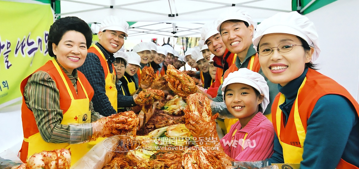 2004 김치엑스포가 나흘째 열리던 14일 양재동 aT센터(서울농업무역센터). 1층전시장에서 김치 및 건강발효식품·기기전이 개최되는 동안, 전시장 앞 광장에서는 적십자사 자원봉사자들과 일반 자원봉사자 몇 명이 김장을 하고 있었습니다.