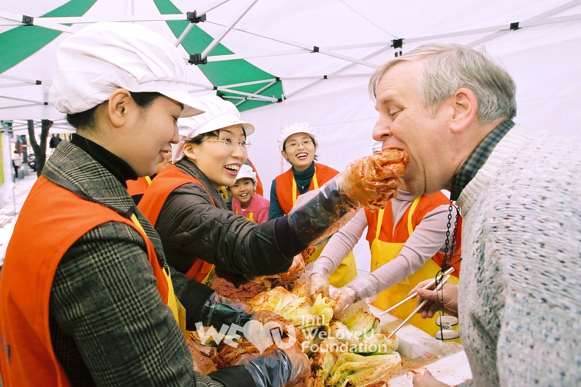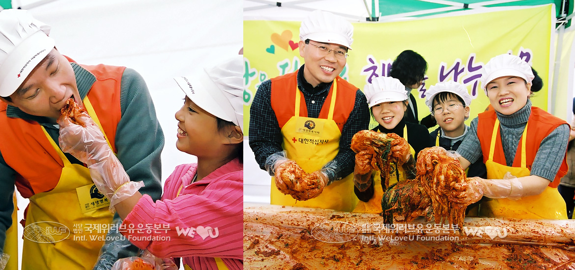 이 자리에는 가족이 함께 김치를 담그며 가족사랑과 이웃사랑을 함께 실천하던 가족회원들이 특히 눈길을 끌었습니다. 엄마 아빠 옆에서 야무지게 김치를 버무리는 초등학생 꼬마를 보며 회장님은 “고사리손으로까지 봉사를 하니 김치가 맛있을 수밖에 없겠다”고 칭찬하셨습니다. 아이들은 금세 여기저기에 고춧가루를 묻히면서도 김치 담그는 게 재미있다며 즐거운 표정이었습니다. “실제 김장을 해보니 손이 시렸다”는 초등학교 6학년 오윤재 어린이는 집에서 김장할 때 꼭 엄마를 도와드리겠다고 의젓하게 말하기도 했습니다.