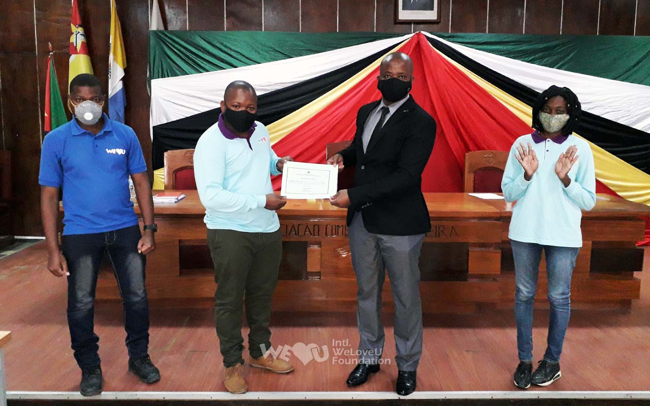 6월 1일, 소팔라주 교육청에서 마누엘 시카미스 주교육감과 교육청 및 위러브유 관계자들이 최소 인원으로 자리한 가운데 명예증서 수여식이 열렸다.