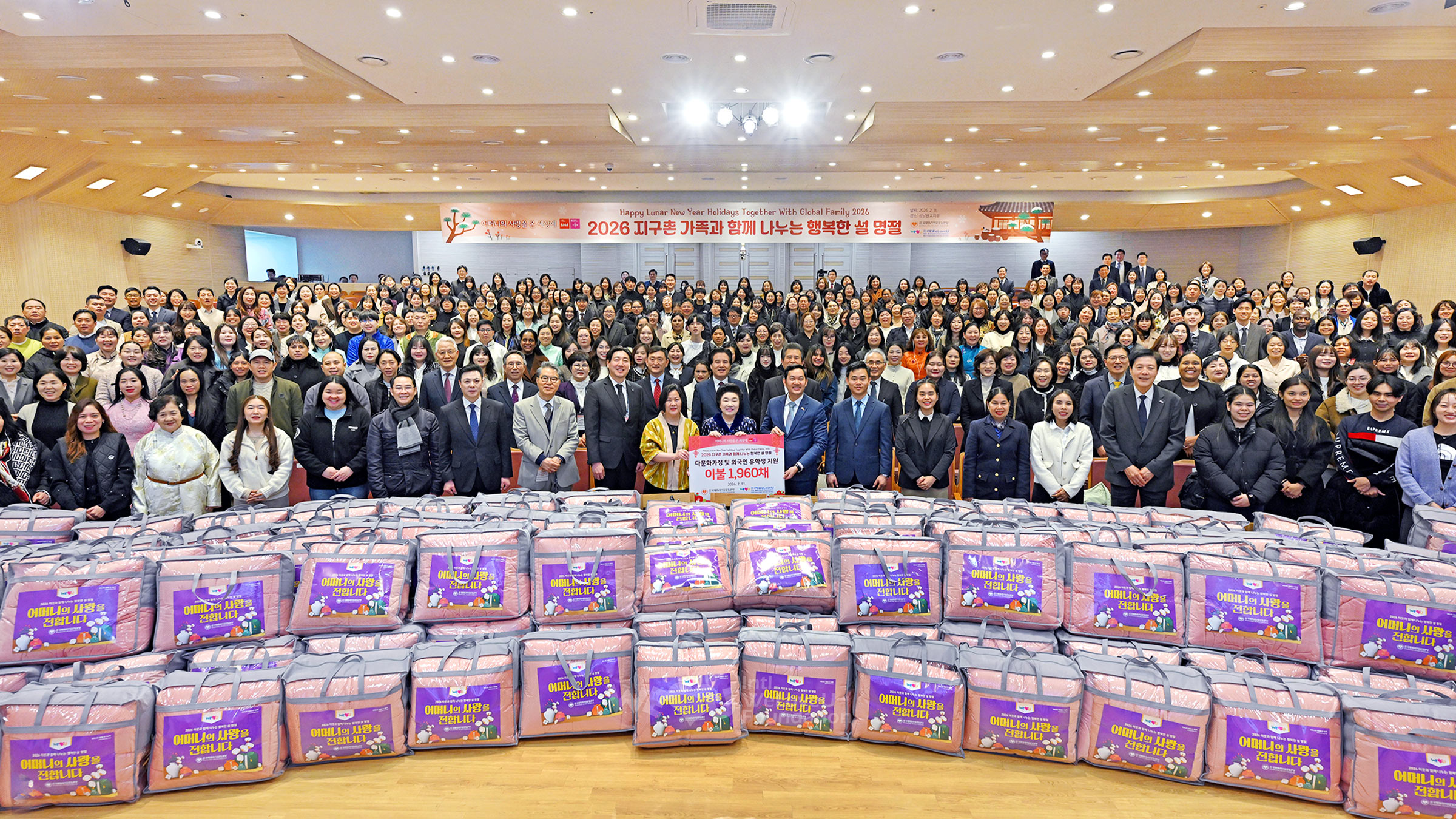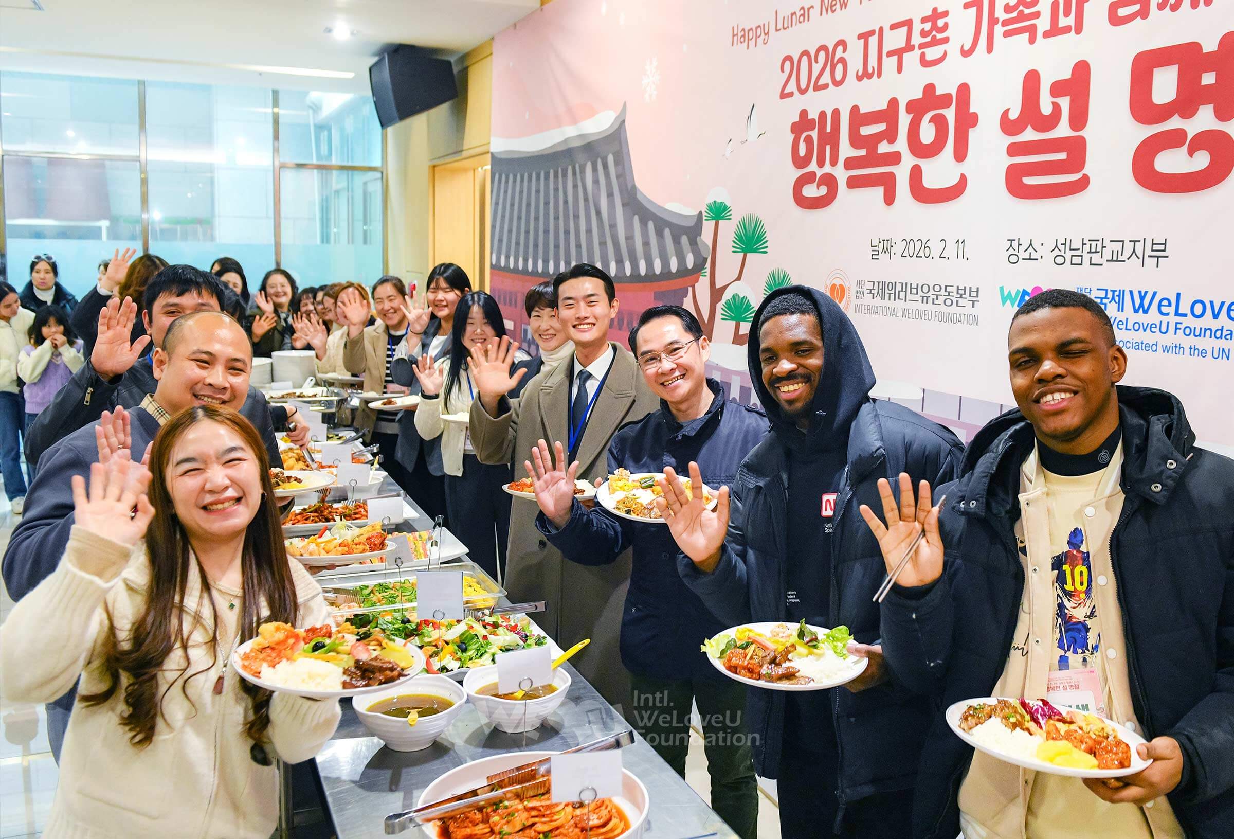 2월 11일, ‘2026 지구촌 가족과 함께 나누는 행복한 설 명절’ 행사가 개최됐다. (재)국제위러브유와 (사)국제위러브유운동본부 주최로 성남판교지부에서 열린 이 행사는 본국을 떠나 한국에서 거주 중인 이웃들을 격려하고 정을 나누는 자리였다. 위러브유 장길자 명예회장과 이사진, 한국아동학대예방협회 이배근 회장 및 네팔, 프랑스, 미국, 중국, 인도, 우즈베키스탄, 방글라데시, 에콰도르 등 총 26개국 출신 외국인 유학생·근로자, 다문화가족 등 약 450명이 함께했다. 주한 필리핀·캄보디아 대사 등 각국 외교관들도 참석했다.