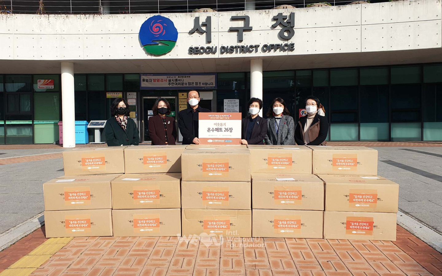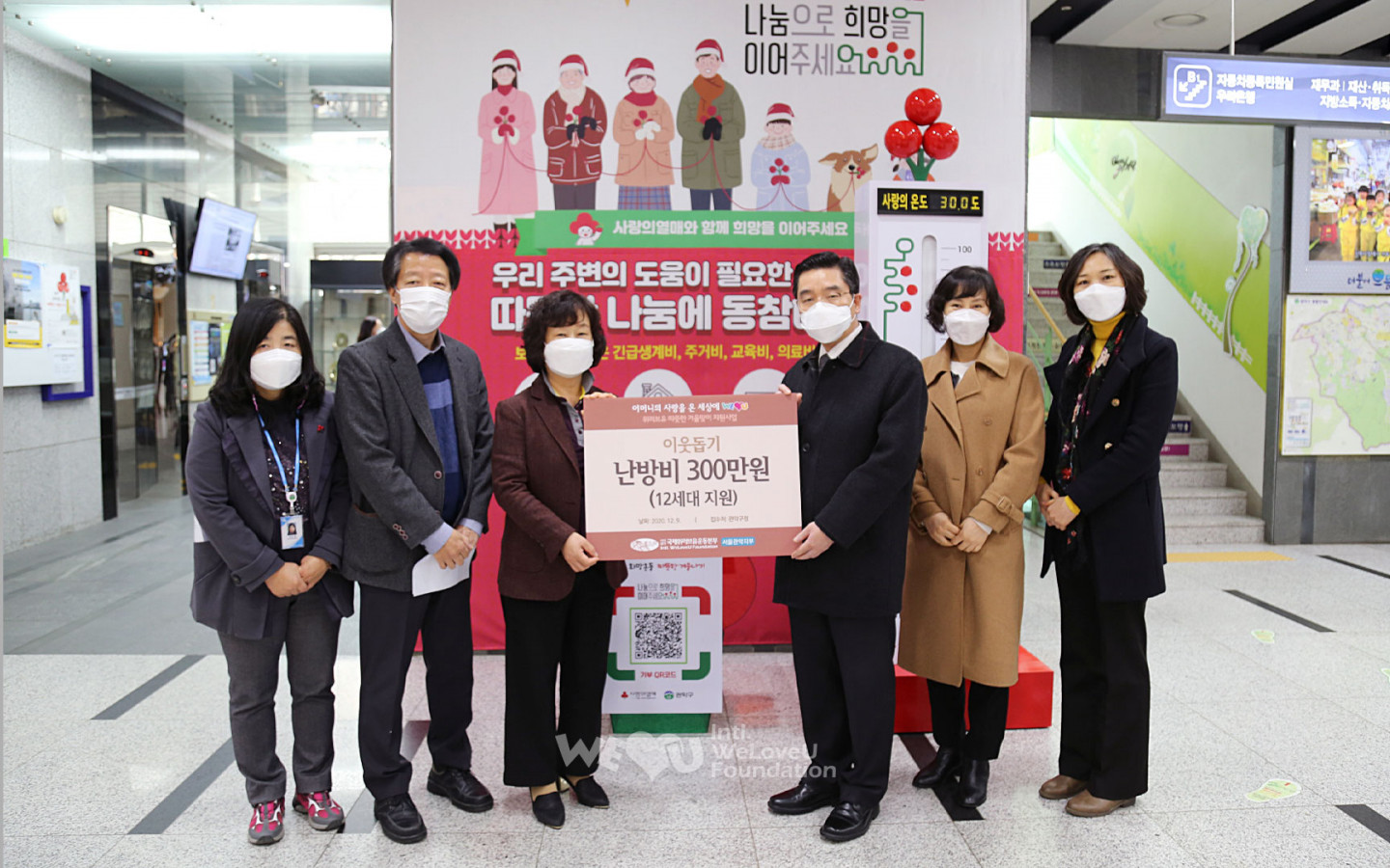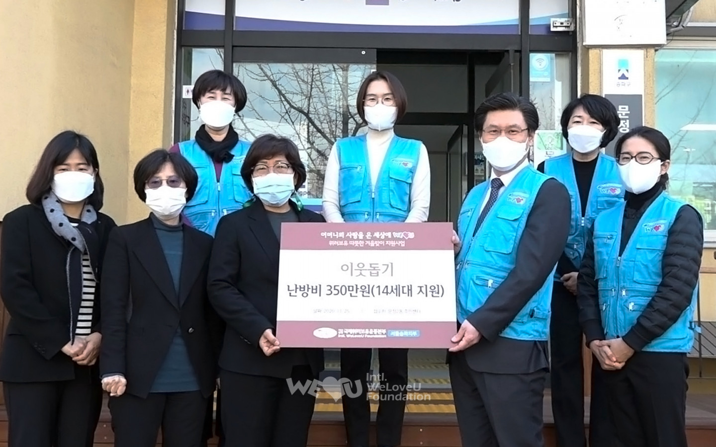 11월 16일부터 12월 10일까지, 전국에서 위러브유의 ‘2020 따뜻한 겨울나기 지원사업’이 펼쳐졌다. 수도권과 춘천·대전·대구·울산·광주·부산 등지 14개 지역 회원들이 시·구청 및 주민센터를 찾아 저소득가정, 홀몸노인, 다문화가정 등 복지소외계층 이웃을 위한 성금과 기증품을 전달했다. 서울 낙성대동, 문정동 등 일부 지역에서는 회원들이 방역수칙을 준수하는 가운데 이웃 가정을 직접 방문해 기증품과 위로를 전하기도 했다.