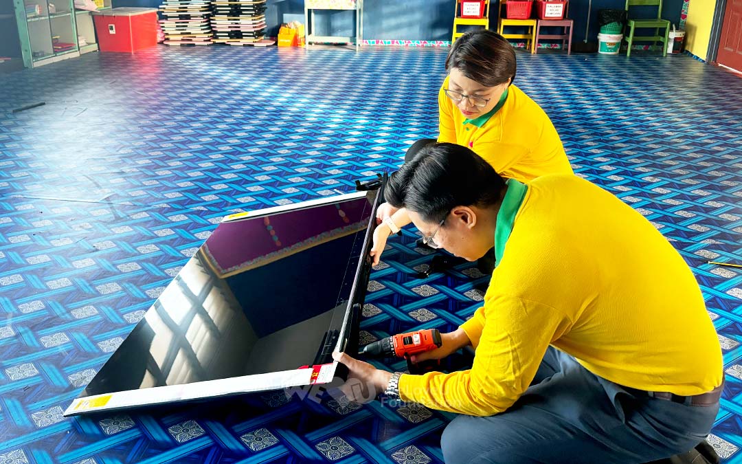 위러브유는 페낭주 교육청과 논의해 6개 학교에 시청각 교육을 위한 TV를 지원하기로 했습니다. 이후 7월 3일, 해당 학교들을 방문해 기기를 전달하고 직접 설치해 주었습니다.