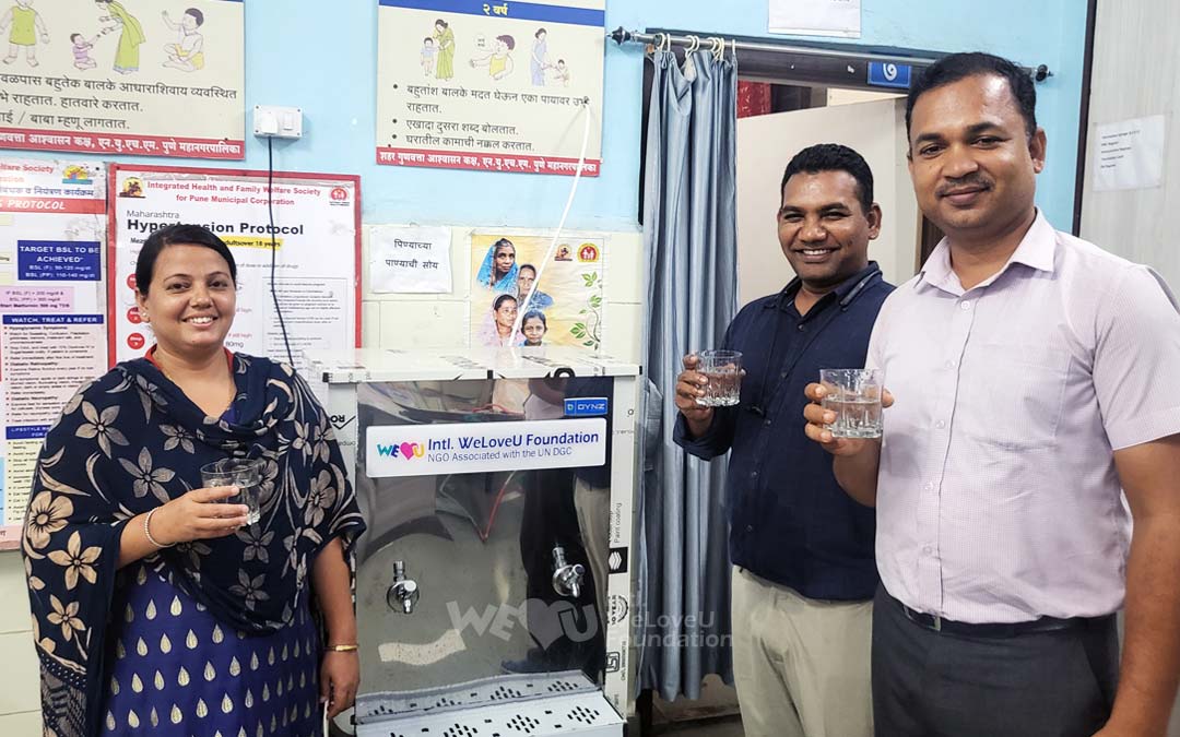 위러브유는 푸네시청과 협력해 병원의 식수 환경 개선에 나섰습니다. 병원을 찾는 환자와 가족, 의료진이 깨끗하고 안전한 물을 마실 수 있도록 9월 11일, 병원에 정수 필터와 80리터 용량의 음수대를 지원했습니다.