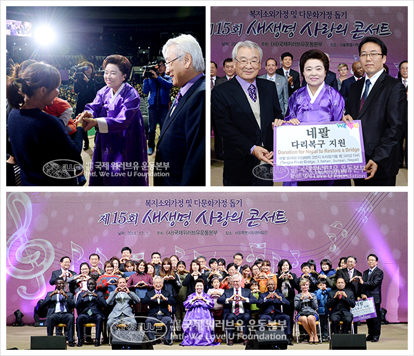 사단법인 국제위러브유운동본부가 희망의 노래로 복지소외가정 및 다문화가정과 희귀병 어린이들, 수해 때마다 다리가 붕괴돼 더 큰 피해를 입는 네팔 순사리 지역민에게 웃음을 선물했다. 12월 1일, 서울특별시학생체육관에서 개최한 ‘제15회 새생명 사랑의 콘서트’다. 장길자 회장, 이순재 후원회장, 이배근 한국아동학대예방협회장, 주한 외국 공관 관계자를 비롯한 각계각층 인사들과 6천여 명의 회원, 시민들이 행사장에 가득 모여 희망과 웃음을 응원했다.