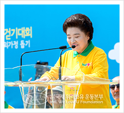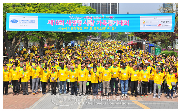 4월 26일 오전 10시경, 서울 올림픽공원 평화의 광장에는 국제위러브유운동본부 회원 가족 1만여 명이 모여 자리를 잡았다. 다문화가정과 복지소외가정을 돕기 위해 펼쳐진 이번 걷기대회에는 위러브유 장길자 회장과 이강민 이사장 등 이사진은 물론, 이배근 한국아동학대예방협회장, 주한 튀니지 대사, 이란 대사를 비롯하여 세네갈, 콜롬비아, 루마니아, 캄보디아, 피지 대사관에서 온 외교사절들과 그 가족까지 약 30명이 행사 취지에 공감하고 기꺼이 동참했다. 윤태규, 벤 등 가수들도 바쁜 일정을 쪼개 달려와 사랑 나눔의 행보를 함께했다.