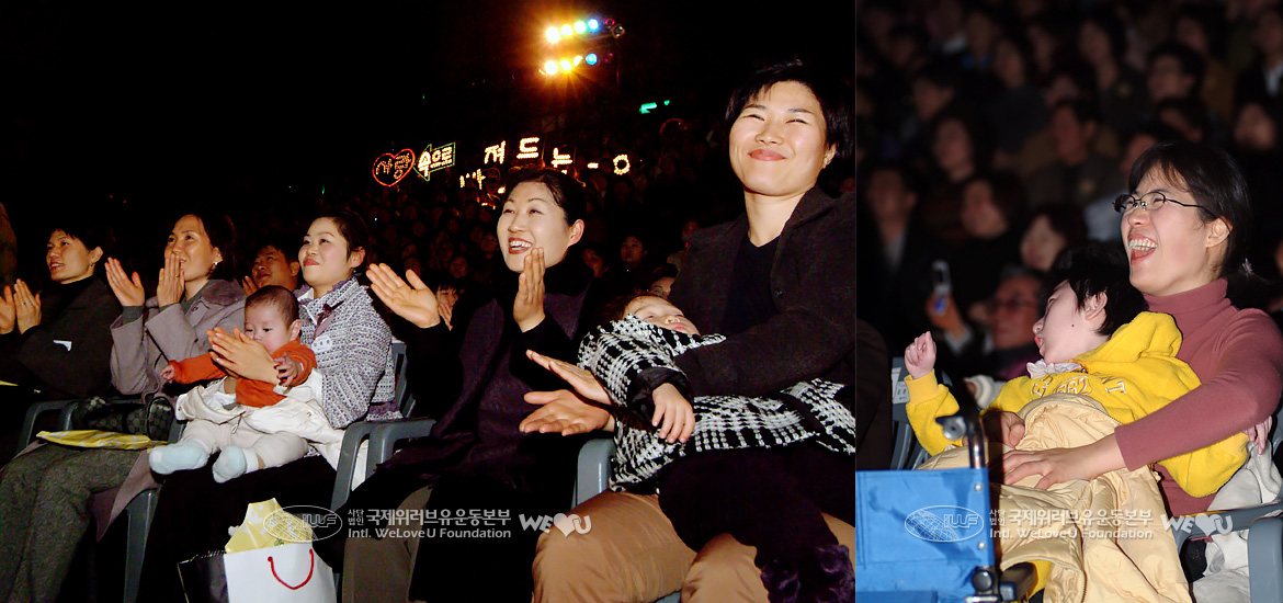 새생명어린이합창단의 동요 메들리로 막이 오른 2부 행사. 세계 각국의 민속의상을 입고 민속춤과 민요를 선보인 어린이들의 발랄한 무대는 모두에게 생기를 선사해 주었습니다. 박옥희, 조민현 회원의 가곡 목련화가 잔잔하게 흘러나오자 객석에서는 회원들의 손에 들린 야광막대와 휴대폰의 빛이 물결치며 콘서트장을 아름답게 수놓기 시작했습니다.