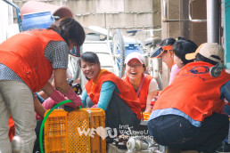 뜻하지 않은 재해로 실의에 젖은 이웃들을 위해 팔을 걷어붙인 회원들은 먼저, 조를 나누어 도움이 필요한 가옥들을 일일이 찾아다녔습니다. 침수되었던 지층가옥의 집안 벽면에는 절반이상까지 물이 차올랐던 자국이 선명했습니다. 대부분의 집기들은 거의 쓰레기가 되었고, 심지어 방바닥의 시멘트가 물러져 구멍이 뚫린 채 물이 고여 있는 곳도 있었습니다. 회원들은 피해가옥을 청소하며 젖은 옷가지들을 빨고, 냉장고 등의 가전제품과 살림살이들을 일일이 닦고 씻는 등의 다양한 봉사를 펼쳤습니다.