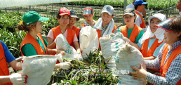 이날 회원들이 주로 봉사하게 된 장소는 서양란 시설농장. 일부는 비닐하우스 철거 및 밭에 아직 남아 있는 쓰레기 치우는 일에 팔을 걷어붙였다. 3년간 키워 중국시장과 일부 국내시장에 내다파는 서양란은 하우스가 통째로 물에 잠기는 바람에 병에 걸려 잎 끝부터 거무스름하게 타들어가고 있었다. 3년 동안 고이 길러낸 난이 꽃을 피우기 직전에 타들어가는 것을 지켜보는 농부의 마음도 시커멓게 타들어갔으리라.