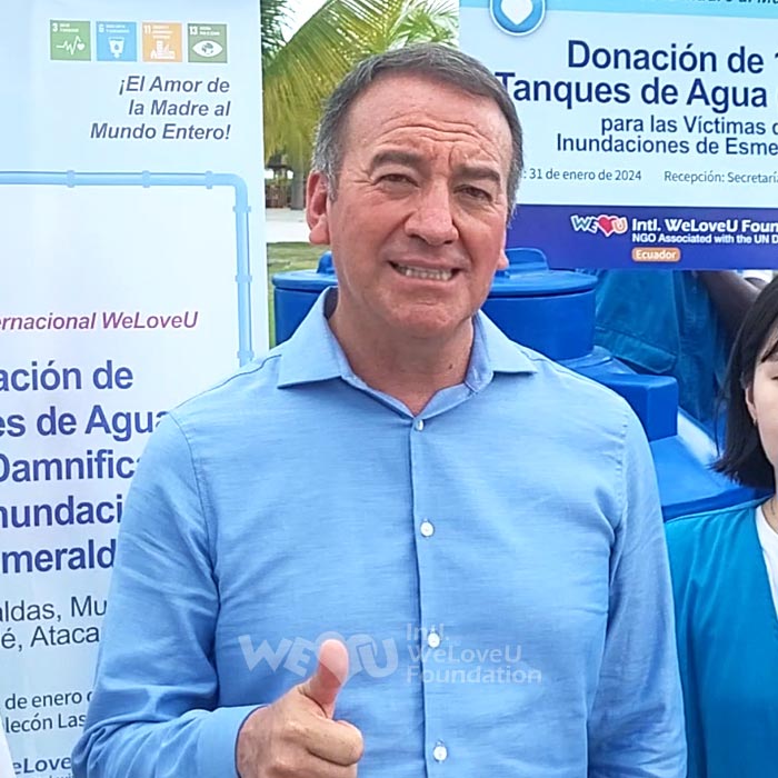“국제위러브유의 도움은 이번이 처음이 아닙니다. 제가 에스메랄다스 주지사로 있을 때, 지진 피해를 입은 주민들을 위해 텐트와 비상식량을 지원해 줘서 큰 도움이 됐습니다. 에스메랄다스는 아름다운 곳이지만 기후변화로 인한 자연재해가 많아 늘 걱정입니다. 오늘 물탱크 기증으로 주민들이 깨끗하고 안전한 물을 사용할 수 있게 됐습니다. 다시 한번 위러브유에 무한한 감사를 드립니다.”
