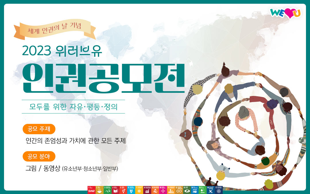 위러브유는 12월 10일 세계 인권의 날을 기념해 인권에 대한 관심과 이해를 높이고, 서로 존중하는 문화를 바탕으로 아무도 외롭지 않은 세상을 만들기 위해 ‘2023 위러브유 인권공모전’을 개최했습니다.