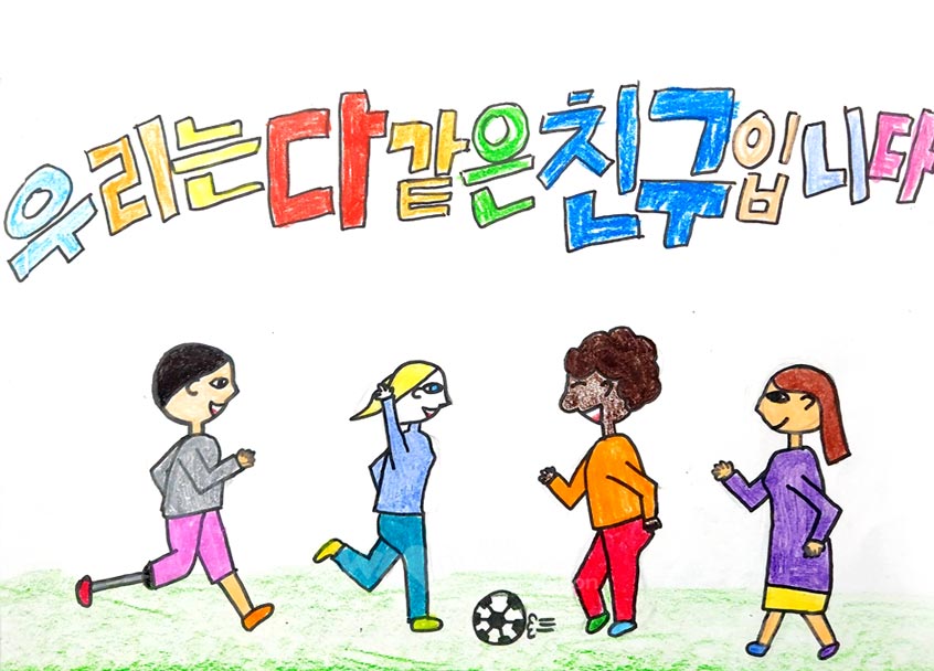 “피부색이 달라도, 언어가 달라도, 몸이 불편해도 우리는 모두 친구예요.”