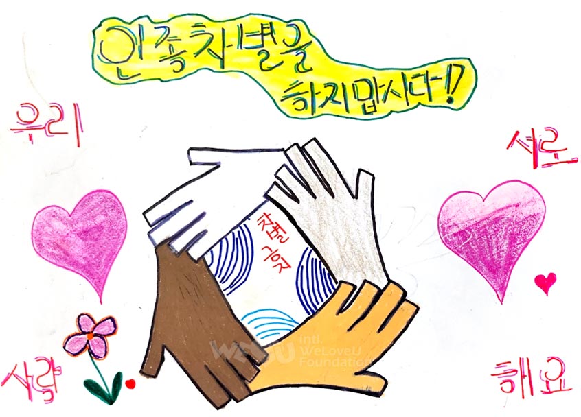 “인종 차별을 하지 말고, 서로 사랑해요.”
