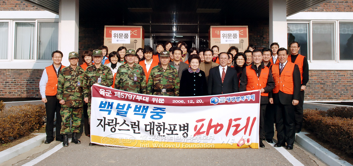 며칠간 계속된 한파가 모처럼 누그러진 맑은 날, 장길자 회장님과 40여 명의 회원들은 군 부대 위문을 나섰습니다. 새생명복지회에서 올해 위문하게 된 부대는 포병여단인 육군 제 5797 부대입니다.