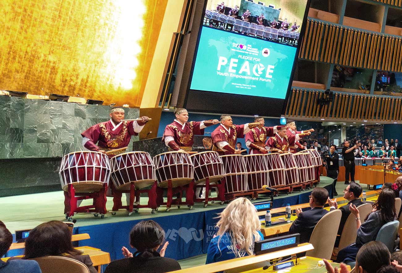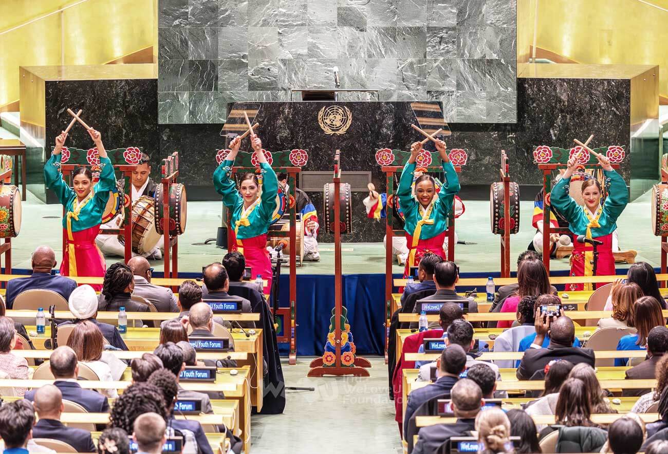포럼은 화합을 상징하는 문화 공연으로 대단원의 막을 내렸습니다. 한국 전통 북의 웅장한 울림을 시작으로 아프리카 북의 리듬, 그리고 현악 사중주의 선율이 어우러지며 국경을 초월한 하모니를 만들어냈습니다. 참석자들은 위러브유 주제가인 ‘아름다운 평화의 소식’을 함께 제창하며 평화의 사절이 될 것을 다짐했습니다.