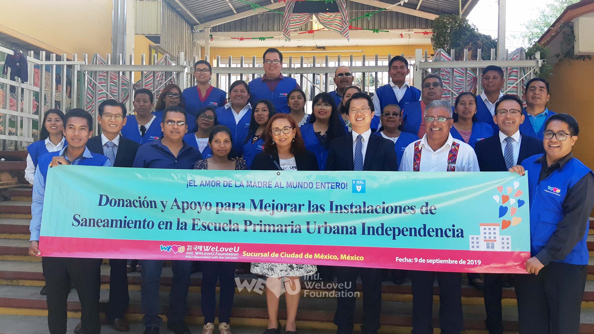 The completion ceremony was held at Urban Independence Elementary School on Sept. 9. It was attended by 450 people, including the school students and teachers, officials from the education office, school parents, and the Intl. WeLoveU members. Seeing the freshly cleaned bathroom, all were overjoyed that the old pending problem, which was a threat to the health of the children, got resolved. On the day, the school delivered a plaque of appreciation to the Intl. WeLoveU and attached an information board that expresses gratitude to the WeLoveU for the support.
