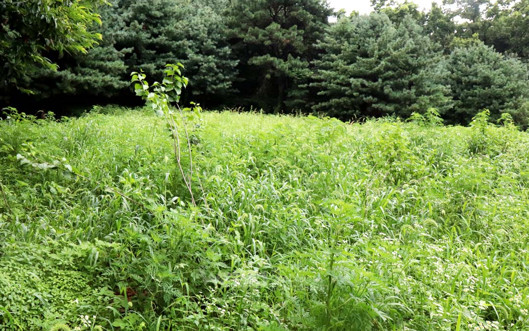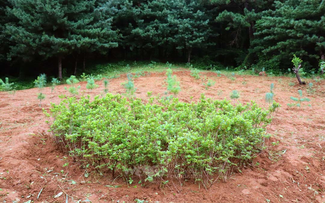 Compared with three months ago, the plants had been diligently gathering nutrients and growing even among the weeds. The azaleas had large leaves where the flowers had faded, and the pine trees had grown to about the height of a fist.
