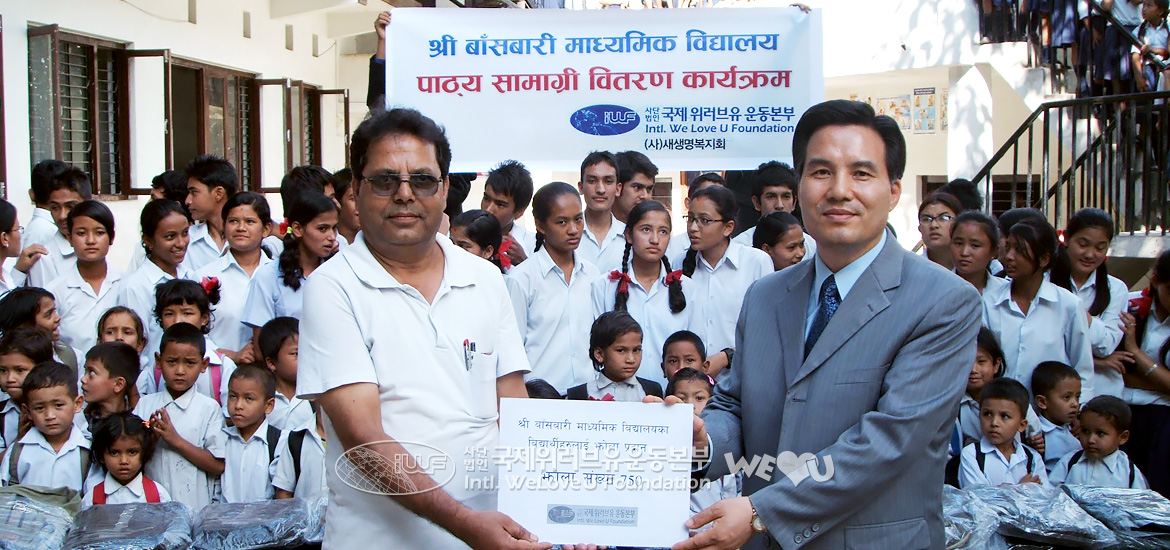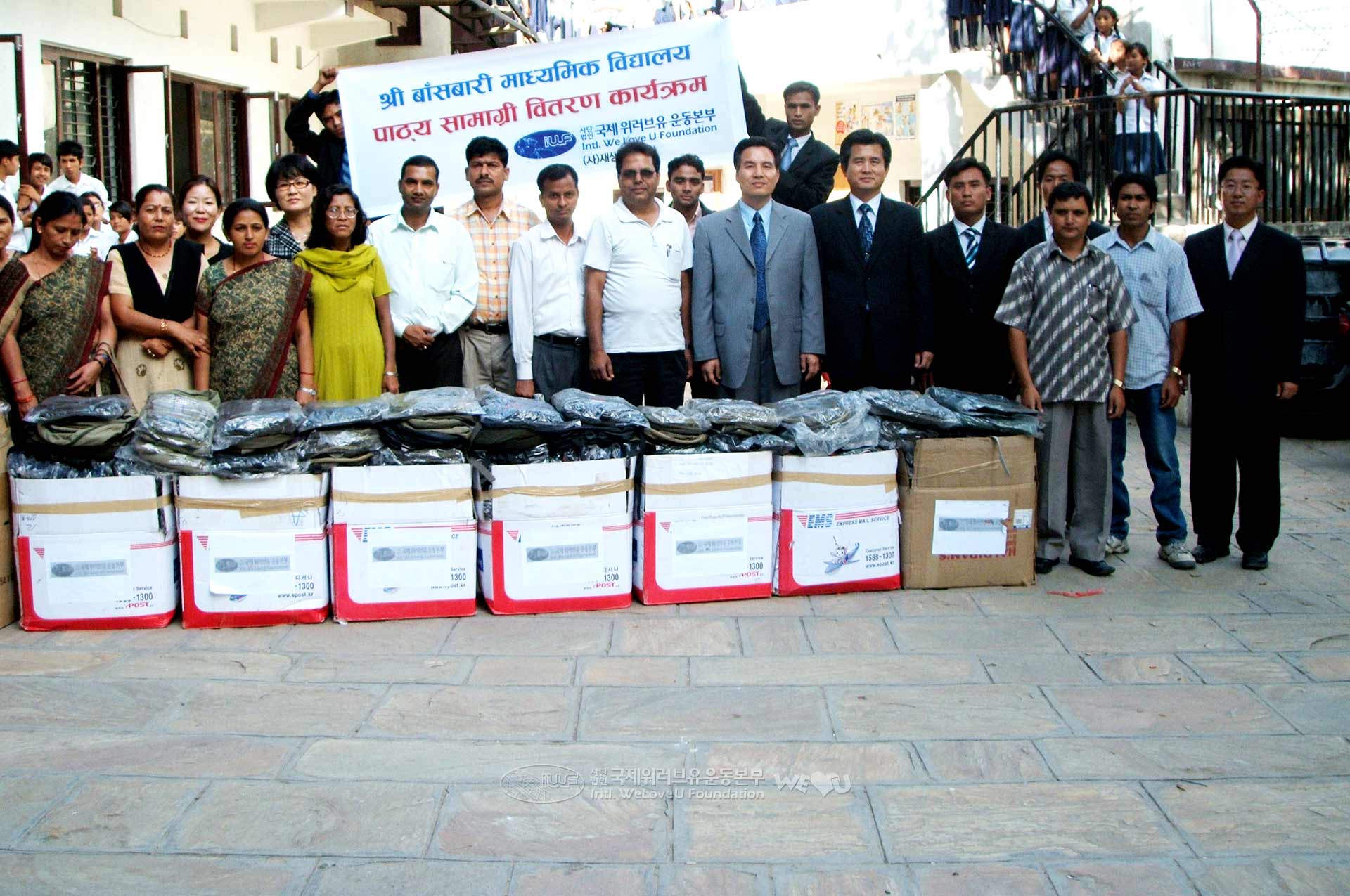 The Shree Basbari Public School, which is located in the suburbs of the capital city Kathmandu, Nepal, consists of 750 students from the 1st grade to the 10th grade. While the private schools are supported by their private foundations or particular organizations, the public schools are run by the government in poor educational environments, financial difficulties and a lack of facilities. On September 21, 2008, when Kim Joo-cheol, Director of the WeLoveU, and other members arrived at the school in the afternoon, the students welcomed them with a big round of applause, standing along the corridor.