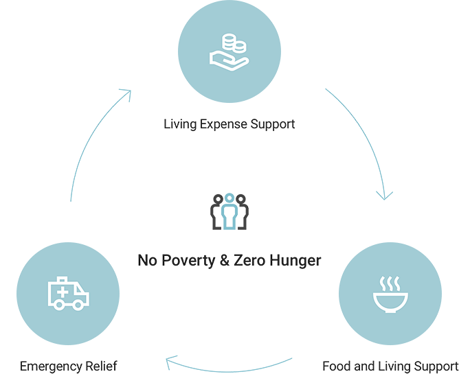 Despite extensive global industrial development, many people still struggle with poverty and hunger. In order to ensure a sustainable improvement of the quality of life, especially of people living in deprived areas whose lives are challenged by poverty, WeLoveU offers various supports ranging from foods to daily necessities, winter items, heating supplies, sanitation facilities and living expenses to help them create a basis for self-supporting livelihoods. We also support displaced people who lost their homes and have their livelihoods damaged due to natural disasters, calamities and civil unrest by offering living condition improvement and psychological recovery services, etc.