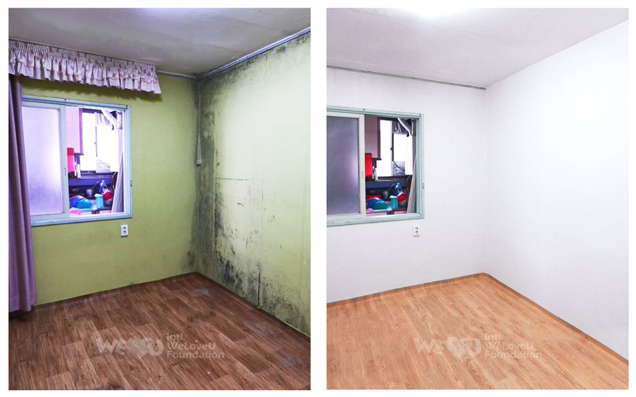 The Intl. WeLoveU Foundation (hereinafter referred to as the “WeLoveU’) came to know a single parent family through the Buk-gu Office in Daegu, Korea. A mother in her fifties, living with her college student son, was unable to financially support her family due to her health issues. The family only relied on each other at the old apartment. It looked like many things were outdated, but they couldn’t afford to repair or renovate any of it.