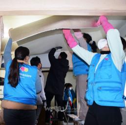 In the biting cold of minus ten degrees Celsius, snowflakes danced around in a swirling waltz. Undeterred by the frosty weather, WeLoveU members visited the house of an elderly person in Songrim-dong, Dong-gu, Incheon, Korea. Inside the poorly lit dwelling, dust had settled everywhere, and mold stained the walls due to moisture. Household items lay corroded and rusted.