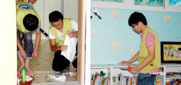And on August 19, thirteen boy students visited the facility together with male adult and male young adult members. Students cleaned the outside of the building which was hard for girls to do. They did great job by cleaning every nook and corner of the facility—building exterior, wall-hanging fans, etc. Shin Jun-su (16 years old), who was covered in sweat while cleaning outside in the hot weather, said, “I had some prejudice against the disabled people, but after I visited here, I came to know that no one wanted to be born disabled. Come to think of it, I felt so sorry to them. From now on, I will love and help them more.”