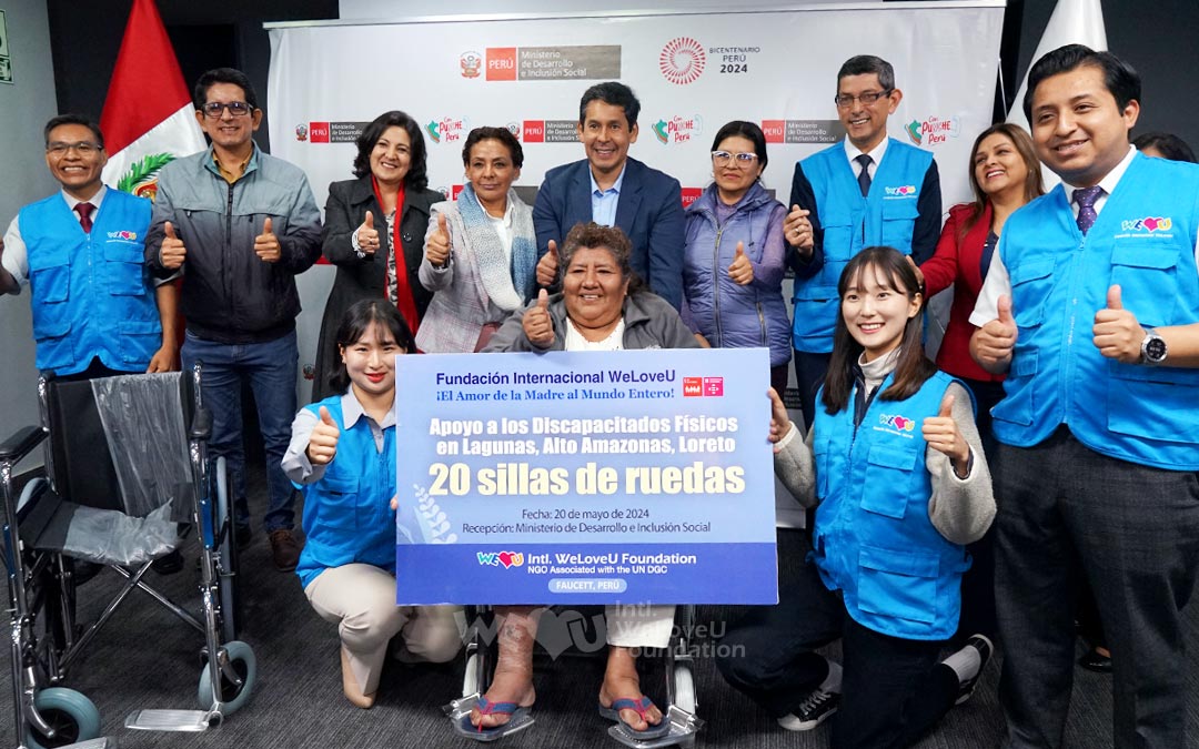“First, I would like to express my gratitude to Chairwoman Zahng Gil-jah. The Intl. WeLoveU Foundation carries out many volunteer activities around the world, spreading love and strength to many people. The wheelchairs donated today will convey a message of love and unity to our neighbors in Lagunas, Loreto, far from Lima. Thank you very much.”