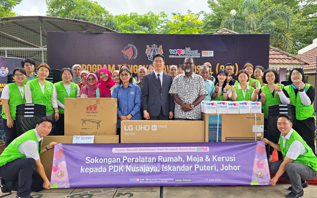 “Today, we have received desks, chairs, and home appliances for disabled students at Nusajaya Community Rehabilitation Program from the Intl. WeLoveU Foundation. On behalf of the students and teachers here, I would like to express my infinite gratitude to Chairwoman Zahng Gil-jah. All these donated items from WeLoveU give a great encouragement to our students. Thank you!”