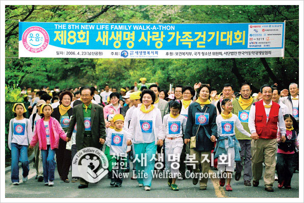 On April 23 (Sunday), 2006, the flowers, which were more beautiful than forsythia and cherry blossoms in spring, were in full bloom on the path of Namsan Park. They were the brilliant smile flowers of the New Life Welfare Foundation members, who attended the 8th New Life Walkathon. Their happy smiles spoke for the slogan of the walkathon, “A Smile Makes a Miracle.”