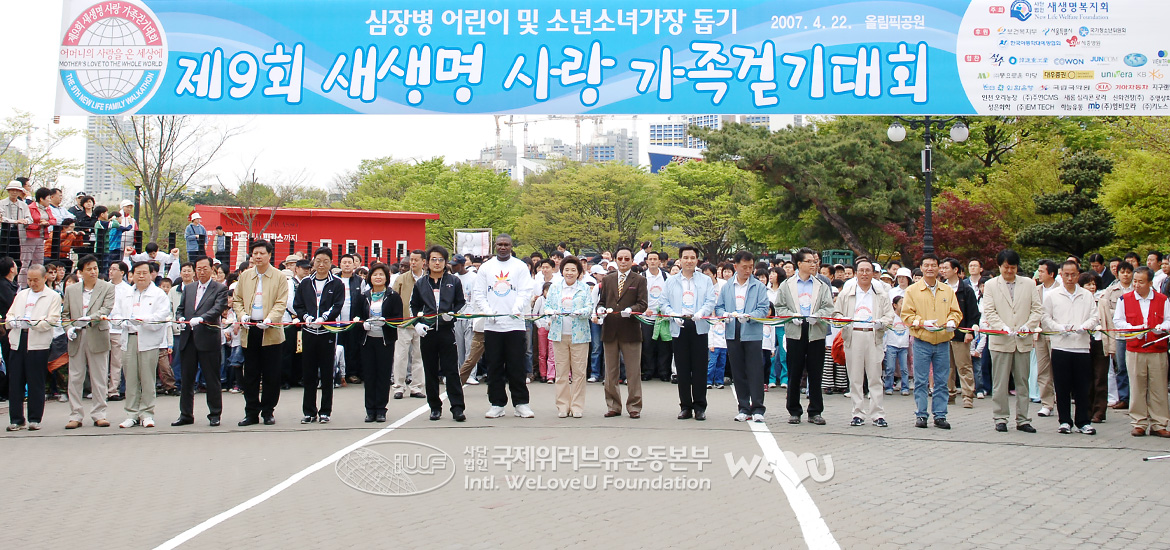 At the Peace Plaza in Olympic Park located Songpa-gu, Seoul, a walkathon for world peace took place on April 22, Sunday. About 10,000 members gathered, wishing for the happiness of children all around the world. Under the slogan, “Mother’s Love to the Whole World,” the 9th New Life Family Walkathon was hosted by the New Life Welfare Foundation and was sponsored by Ministry of Health and Welfare, Seoul Metropolitan Government, Commission on Youth Protection, Korea Association for the Prevention of Child Abuse Network [KAPCAN] and Bucheon Sejong General Hospital.