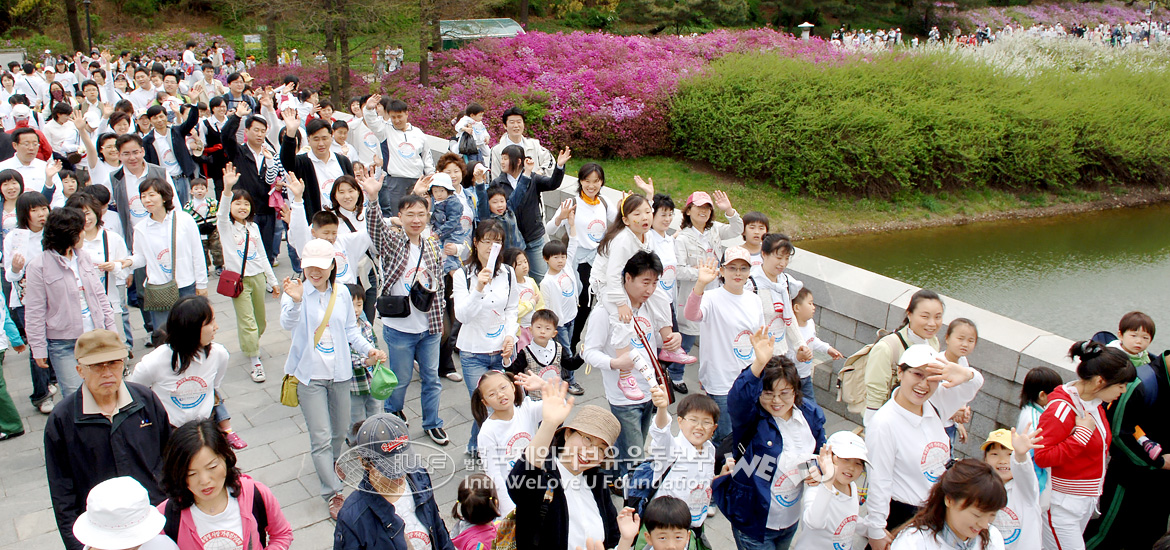 The 9th walkathon started at around 11 a.m. Chairwoman Zahng Gil-jah gave an opening speech and expressed gratitude to the guests, supporting organizations, sponsors and all the members. She called the members who came to practice love for neighbors “the most beautiful and great people in the world” and encouraged them by saying, “You are as fragrant as spring flowers. Your helping hand will be a comforting hand of a mother and stop all the pains in the world and give a bright future to children.”