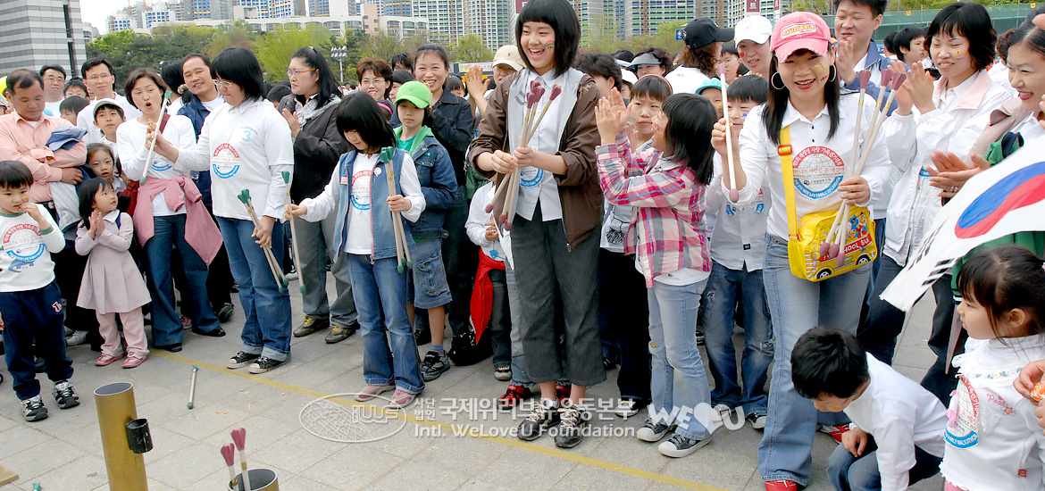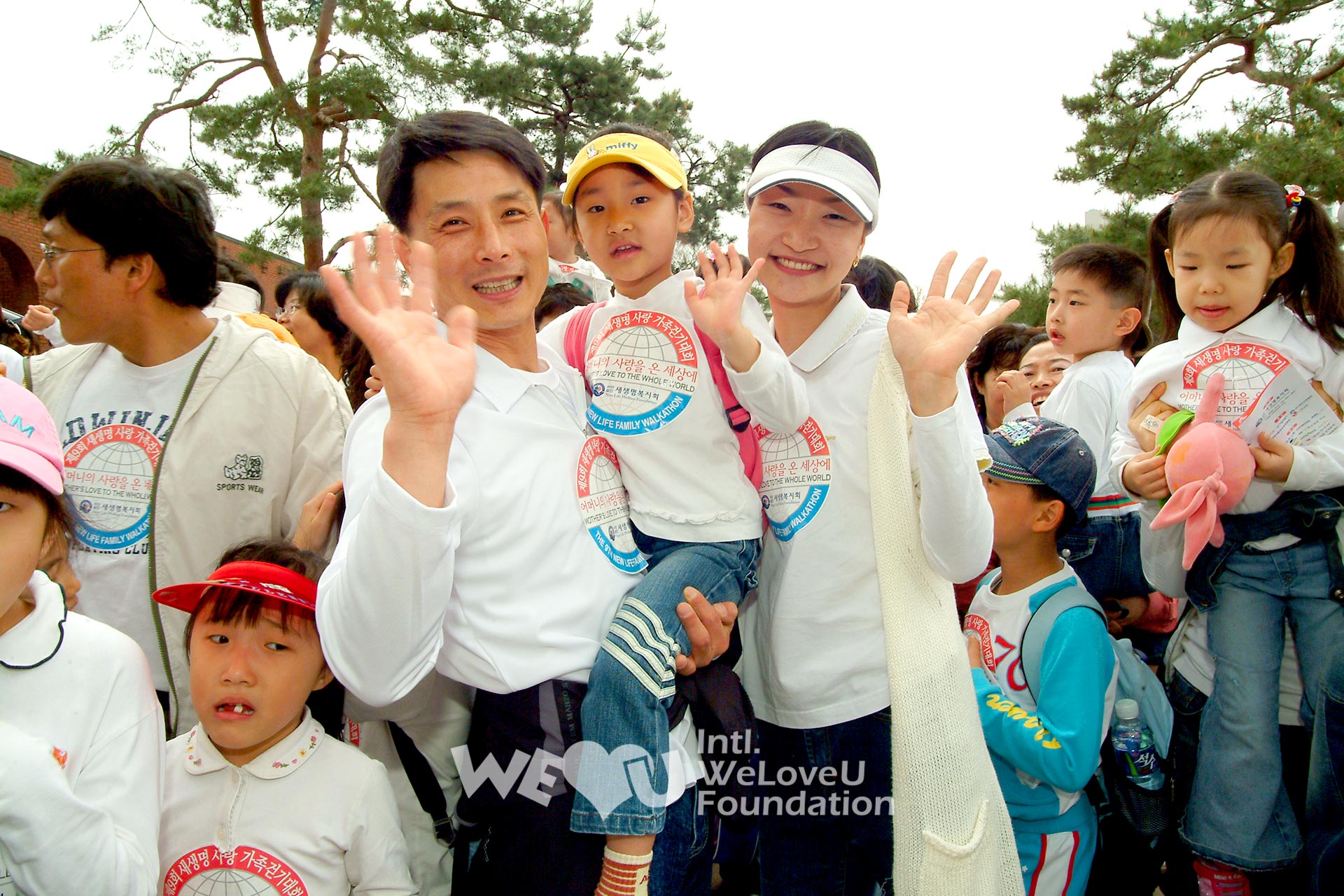 After the members completed walking, they returned to the Peace Plaza and had lunch together with their families. After lunch, the “Festival to Share Love” was held; the New Life Children Choir sang children songs with dance, and the vocalists, who were also foundation members or the PR Ambassadors, sang songs with all their heart. After all the official programs, there was a time for family gathering: making button for smile families, rope-jumping, traditional games and so on.