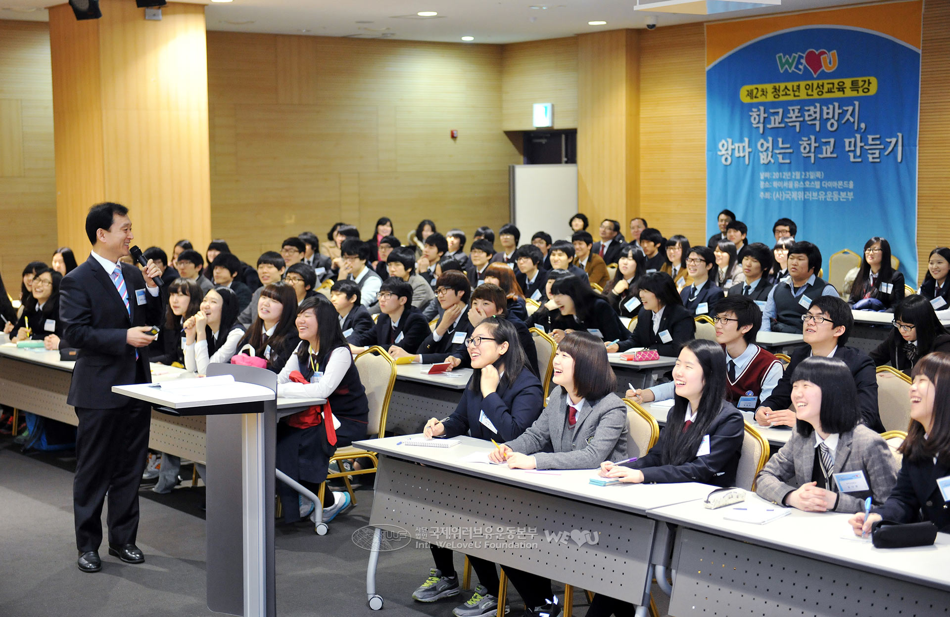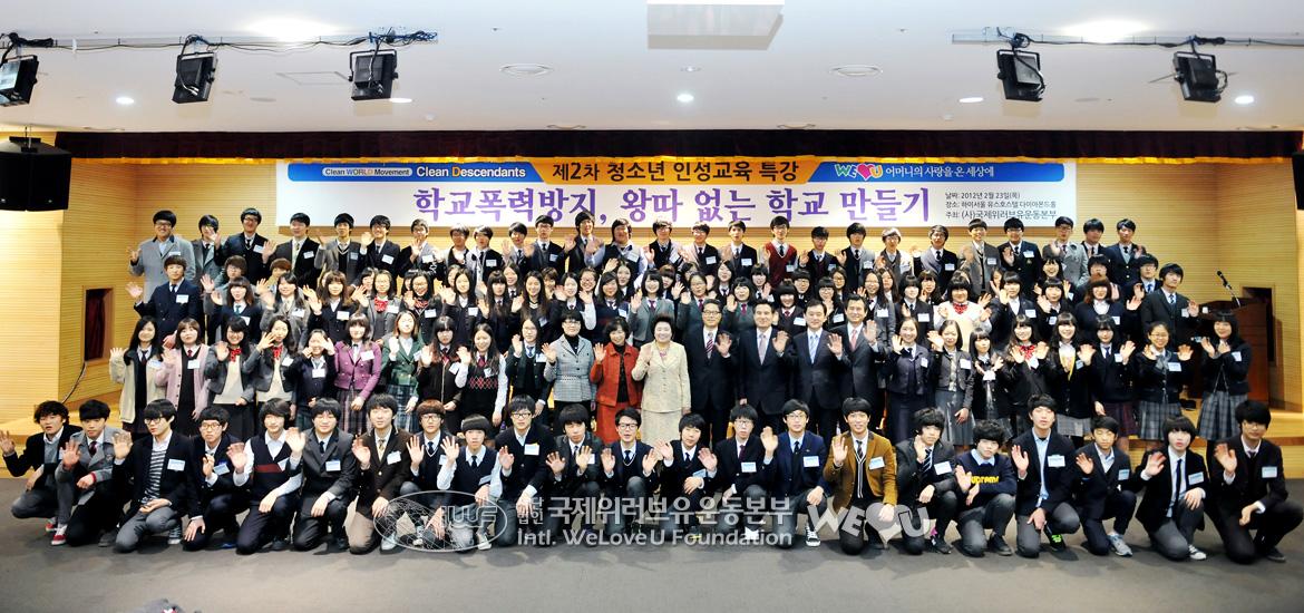 Bài giảng đặc biệt về giáo dục nhân tính dành cho thanh thiếu niên lần thứ 2 của Tổ chức WeLoveU Quốc tế vì sự phát triển nhân tính lành mạnh của thanh thiếu niên đã được tổ chức vào ngày 23 tháng 2 tại Hội trường Diamond, Nhà khách Thanh niên Hi Seoul ở quận Yeongdeungpo, Seoul. Với khẩu hiệu “Phòng chống bạo lực học đường, tạo dựng trường học không có ai bị tẩy chay”, bài giảng đặc biệt lần này có sự tham gia của 150 học sinh trung học khu vực phía Nam Seoul ngay trước thềm khai giảng.