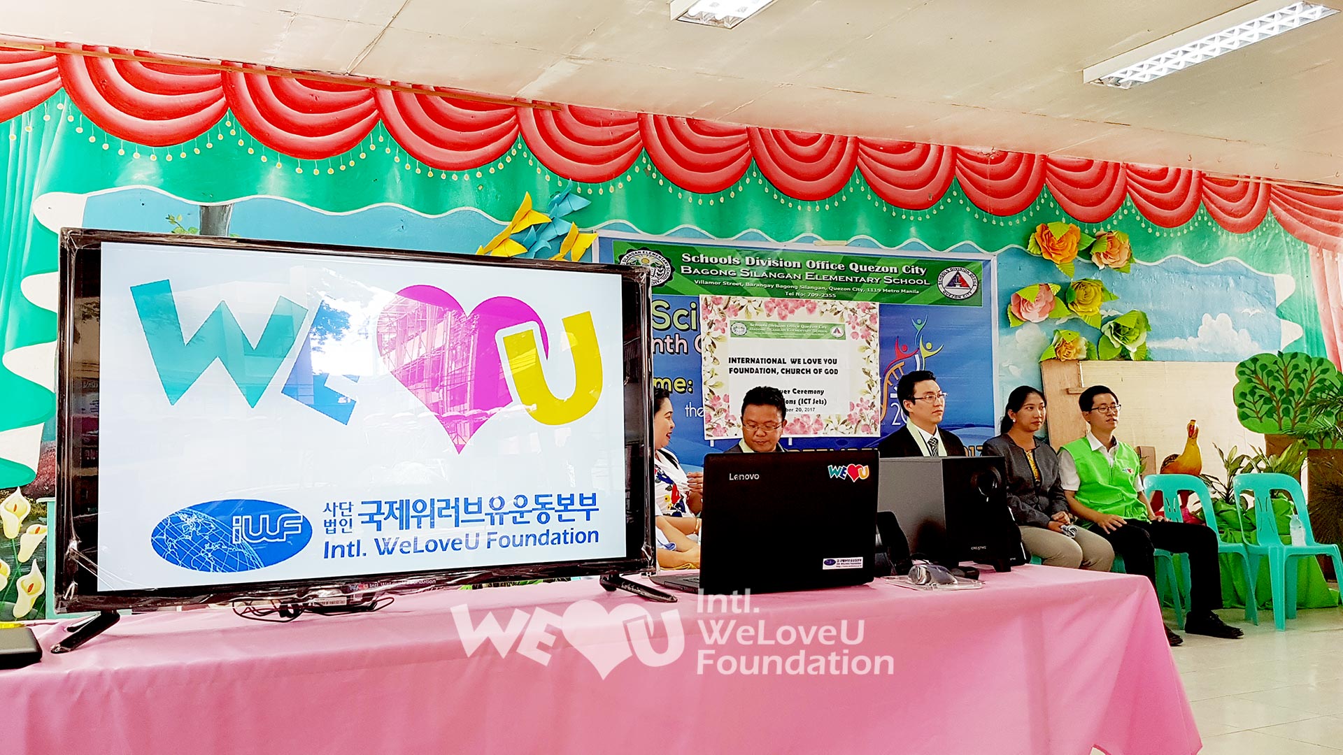 Quỹ WeLoveU Chi bộ Quezon City, Philippines được tòa thị chính Quezon City đề cử một trường học công lập ở Bagong Silangan là một trong các thành phố nghèo ở Metro Manila, trực tiếp thăm viếng cùng nhân viên tòa thị chính, bàn bạc về phương hướng chi viện để cải thiện môi trường giáo dục. Trường tiểu học Bagong Silangan có 6 năm học, 3.000 học sinh nghe giảng chia thành lớp buổi sáng và lớp buổi chiều ở 78 phòng học. Phòng học có thể giáo dục video chỉ có 2 nơi thôi. Quỹ WeLoveU quyết định lắp đặt ti vi 40 inch, máy tính xách tay, và loa ở 20 phòng học để tiến hành nhiều loại giảng dạy đa dạng cho dù ở một số phòng học.