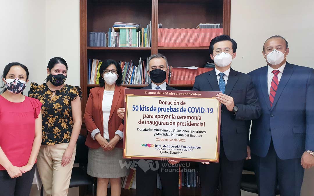 Năm ngoái, khi tỷ lệ tử vong ở Ecuador tăng do COVID-19 và thiệt hại trở nên nghiêm trọng, WeLoveU đã hợp tác với Đại sứ quán Ecuador tại Hàn Quốc để hỗ trợ 1.000 bộ dụng cụ chẩn đoán và 20.000 khẩu trang cho Bộ Y tế và Bộ Ngoại giao Ecuador. Vào thời điểm đó (ngày 13 tháng 5), Tổ chức WeLoveU Hàn Quốc cũng đã ký Ý định thư (LOI) với Đại sứ quán Ecuador tại Hàn Quốc. Lời hứa này đã được thực hiện tại địa phương vào tháng 8, và khi Bộ trưởng Bộ Ngoại giao và các quan chức từ các bộ đã tham dự lễ trao tặng vật phẩm, các hội viên WeLoveU chi nhánh Quito, Ecuador và Bộ Ngoại giao đã kết mối nhân duyên.