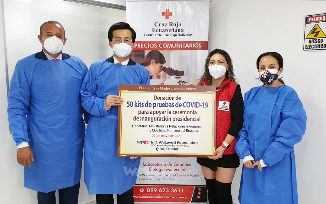 Ngày 24 tháng 5, lễ nhậm chức của Tổng thống Ecuador Guillermo Lasso đã được tổ chức. Tổng thống và các quan chức cấp cao của các nước đã chúc mừng trong khi tuân thủ quy tắc phòng dịch COVID-19. Các quan chức Bộ Ngoại giao Ecuador cũng có mặt. Tất cả đều được kiểm tra với bộ dụng cụ chẩn đoán COVID-19 để ngăn chặn virus. Bộ dụng cụ chẩn đoán này do Tổ chức WeLoveU Quốc tế, thông qua Hội Chữ thập đỏ Ecuador, cung cấp cho Bộ Ngoại giao.