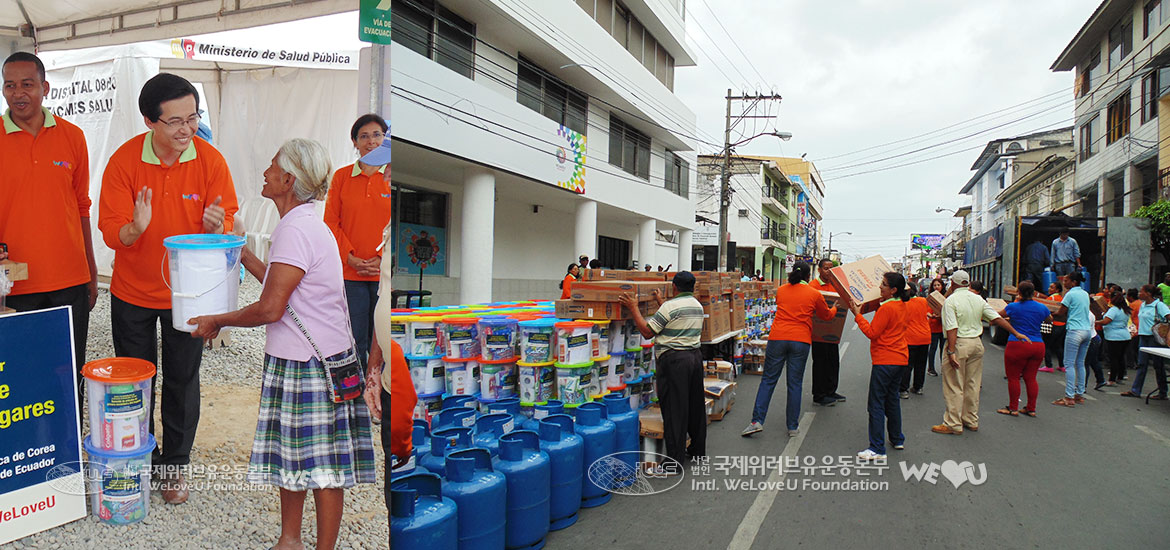Quỹ WeLoveU đã gặp các nhân viên chính phủ Ecuador và bàn luận về tình huống địa phương và phương hướng chi viện, và thông qua khảo sát hiện trường khu vực thiệt hại, Quỹ đã quyết định chi viện dụng cụ nhà bếp và đồ dùng thiết yếu hầu cho người dân mau chóng quay trở lại sinh hoạt thường nhật. Lúc khảo sát hiện trường tiểu bang Esmeraldas, Quỹ đã trực tiếp gặp gỡ Bộ trưởng Bộ Tổng hợp Kinh tế Xã hội Lidice Larrea đến hiện trường để tham dự Hội nghị nội các để thiết lập đối sách đối phó thiệt hại động đất. Các nhân viên chính phủ Ecuador gồm Bộ trưởng Larrea đón nhận vui vẻ chi viện của Quỹ WeLoveU, và tỏ vẻ quan tâm nhiều đến việc Quỹ WeLoveU là đoàn thể cứu hộ có trụ sở tại Hàn Quốc.