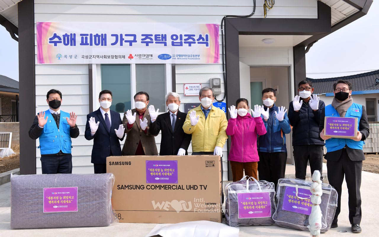 Do đó, Tổ chức WeLoveU Quốc tế đứng ra hỗ trợ khắc phục hậu quả đồng bào lũ lụt. Hợp tác với Ủy ban Gokseong-gun, Hội đồng An ninh Cộng đồng Gokseong-gun và Hội gây quỹ Cộng đồng Phúc lợi Xã hội Jeonnam, chúng tôi đã giúp đỡ các gia đình đa văn hóa bị mất nhà do lũ lụt thông qua “Dự án Hỗ trợ Tài trợ Phù hợp Xây dựng nhà ở mới”, nhằm cải thiện môi trường nhà ở của nhóm người dễ bị tổn thương.