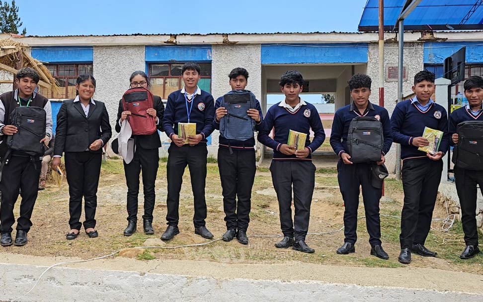 Ngày 15/11, các hội viên WeLoveU ở La Paz đã phối hợp với chính quyền địa phương để trao tặng bộ đồ dùng học tập gồm cặp sách và các loại bút viết cho toàn thể học sinh trong trường.
