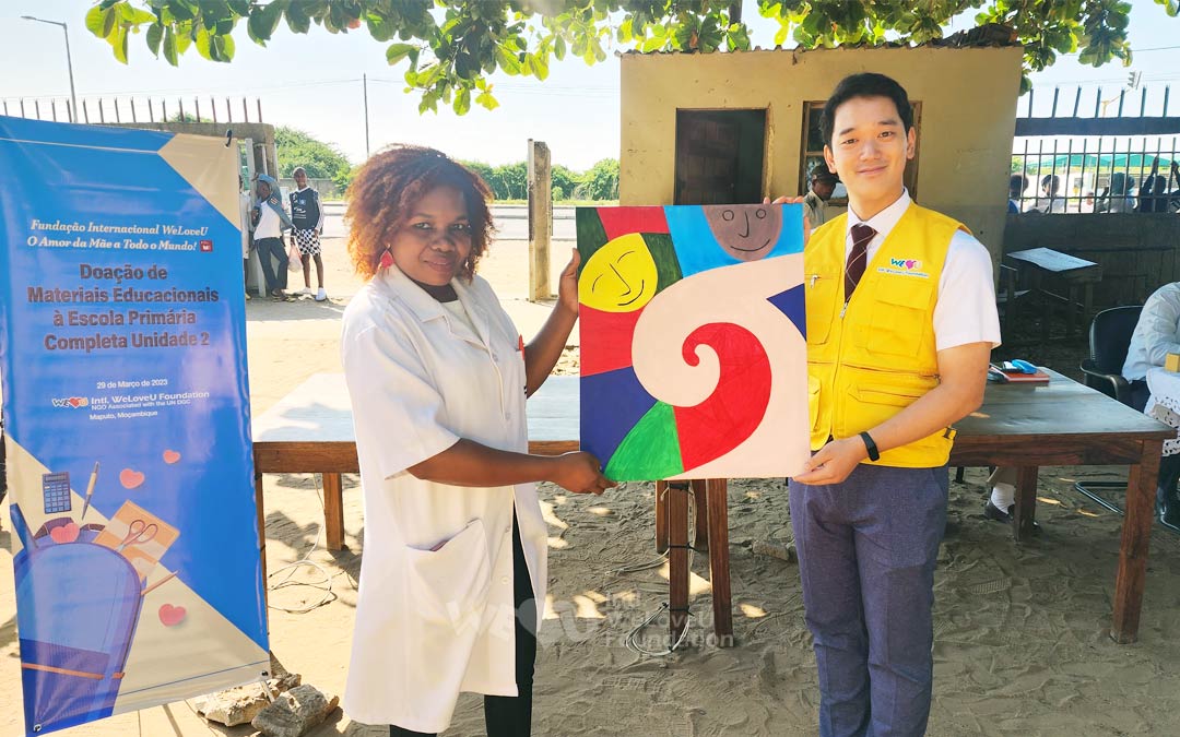 Tháng 7 năm ngoái, các hội viên WeLoveU Mozambique đã đến Sở Giáo dục (Bộ Giáo dục và Phát triển con người) thành phố Maputo. Vì vật giá leo thang do nội chiến, nên người dân càng gặp khó khăn về kinh tế và điều kiện giáo dục của các học sinh ngày càng xấu đi.