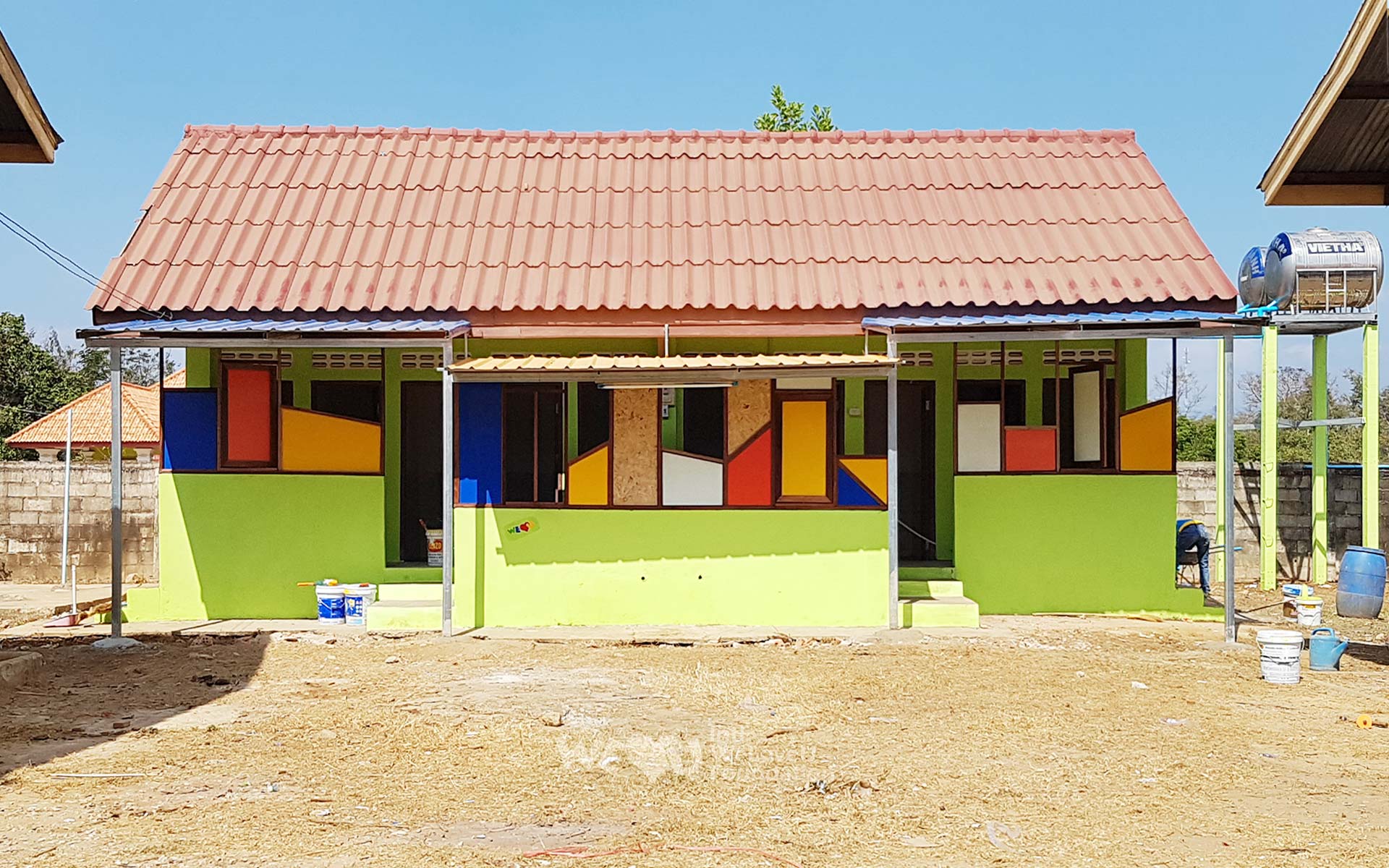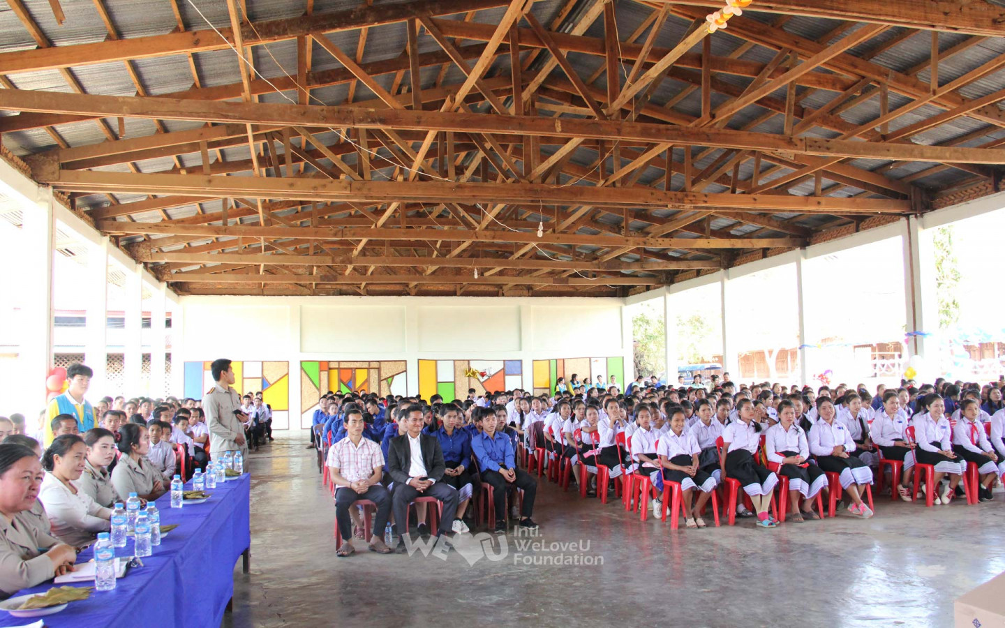 Ngày 12/2, Lễ hoàn công & cải thiện môi trường trường học được tổ chức tại giảng đường mới. Tổng cộng 1.230 người gồm học sinh, giáo viên, 30 hội viên Quỹ WeLoveU, và các nhân vật như Somock Kingsada – Phó trưởng Mặt trận Lào Xây dựng Đất nước, quan chức chính phủ, Thavone Insixiengmai – Bộ trưởng Bộ Giáo dục tiểu bang Savannakhet v.v… đã tham dự sự kiện. Các học sinh trực tiếp biểu diễn vũ điệu tuyệt đẹp để chúc mừng. Vào ngày này, Quỹ WeLoveU trao tặng đồ dùng học tập, cặp sách, quả bóng đá v.v… cho các học sinh. Đặc biệt, họ trao tặng giày dép cho các học sinh ở ký túc xá và trao tặng niềm vui.