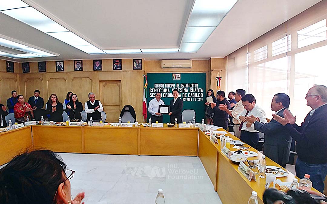 Giám đốc Sở Hỗ trợ Giáo dục Tiểu học thành phố Nezahualcóyotl đã gửi Bản cảm tạ cho WeLoveU tại một sự kiện kỷ niệm được tổ chức tại trường để kỷ niệm Ngày Độc lập Mexico vào ngày 14 tháng 9, vì sự hỗ trợ của WeLoveU. Vào ngày 11 tháng 10, một ngày sau khi tường rào được hoàn công, Thị trưởng thành phố Nezahualcóyotl đã gửi Bản cảm tạ ghi nhận công lao của Chủ tịch danh dự WeLoveU Zahng Gil Jah.