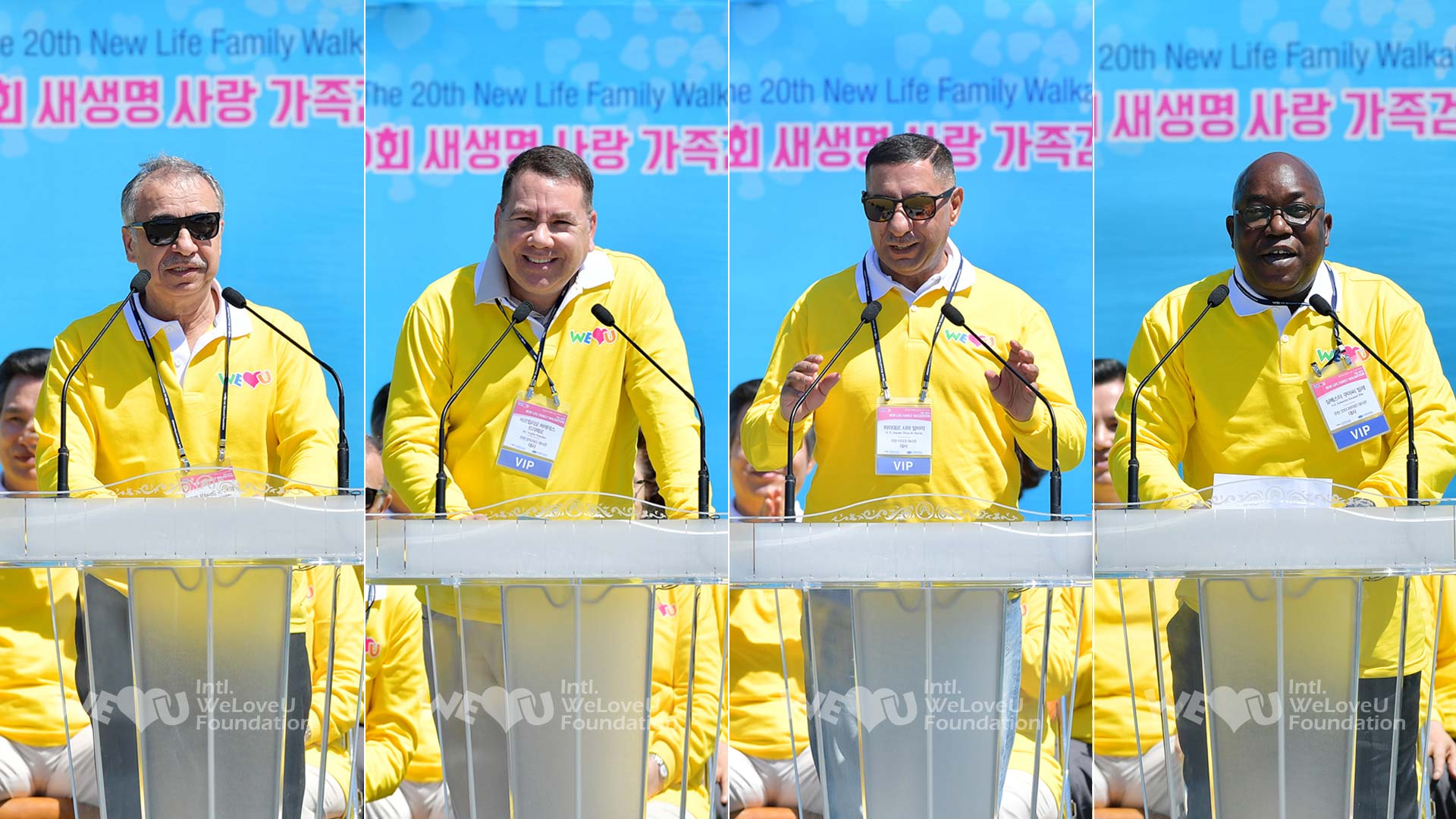 Sau đó, Adel Mohammad Adaileh – Đại sứ Jordan và các đại sứ của 8 quốc gia như Honduras, Iraq, Bờ Biển Ngà, Campuchia, El Salvador, Fiji, và Bolivia đọc diễn văn chúc mừng. Đại sứ Campuchia Long Dimanche bày tỏ lòng biết ơn tới Quỹ WeLoveU đã rao truyền hy vọng thông qua hoạt động phúc lợi cho những người không được hưởng lợi điều kiện thiết yếu cơ bản trong cuộc sống và bị đau đớn. Đại sứ Fiji Peniana Lalabalavu nói rằng “Chúng ta hàng ngày nghe tin tức về bạo lực, khóc lóc và nghèo nàn. Tôi cám ơn Quỹ WeLoveU rao truyền tình yêu thương cho nhiều hàng xóm trải qua nhiều việc khó khăn.” Các hội viên cùng một giọng, đáp lại bằng tiếng kêu rằng “We Love U!”.